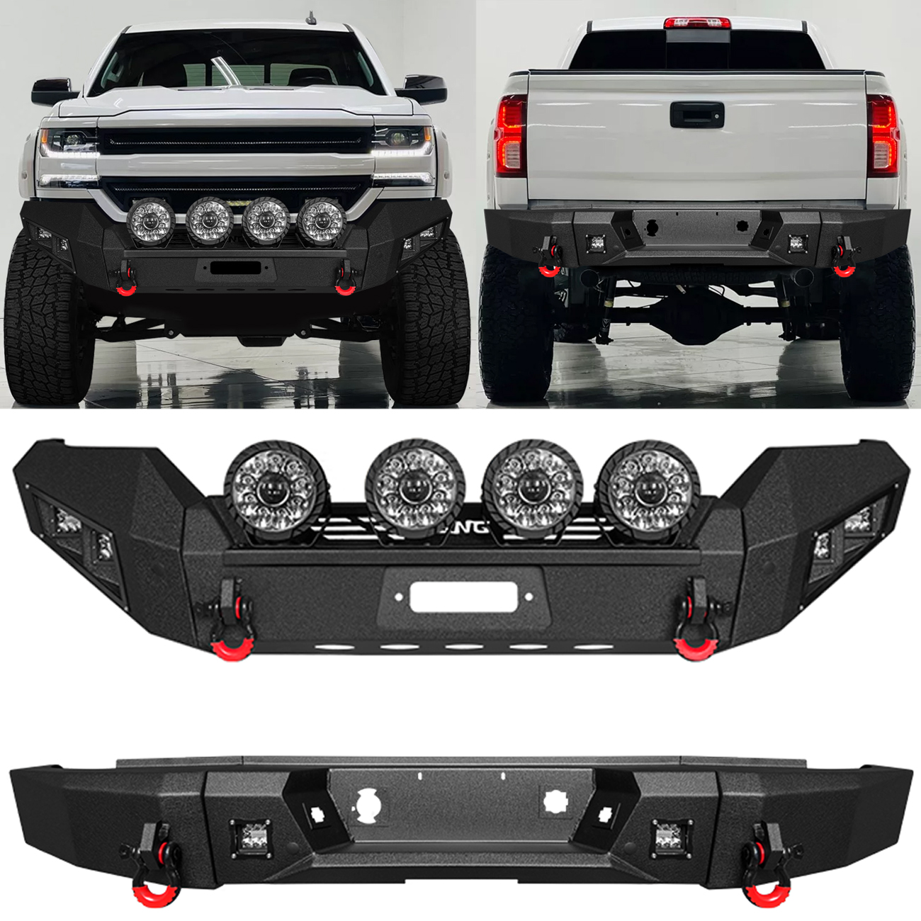 [Product Note]: The bumper does not include a harness connecting the lights and a winch outlet hole trim,the bumper sensor hole does not support the original sensor, and the sensor needs to be purchased separately