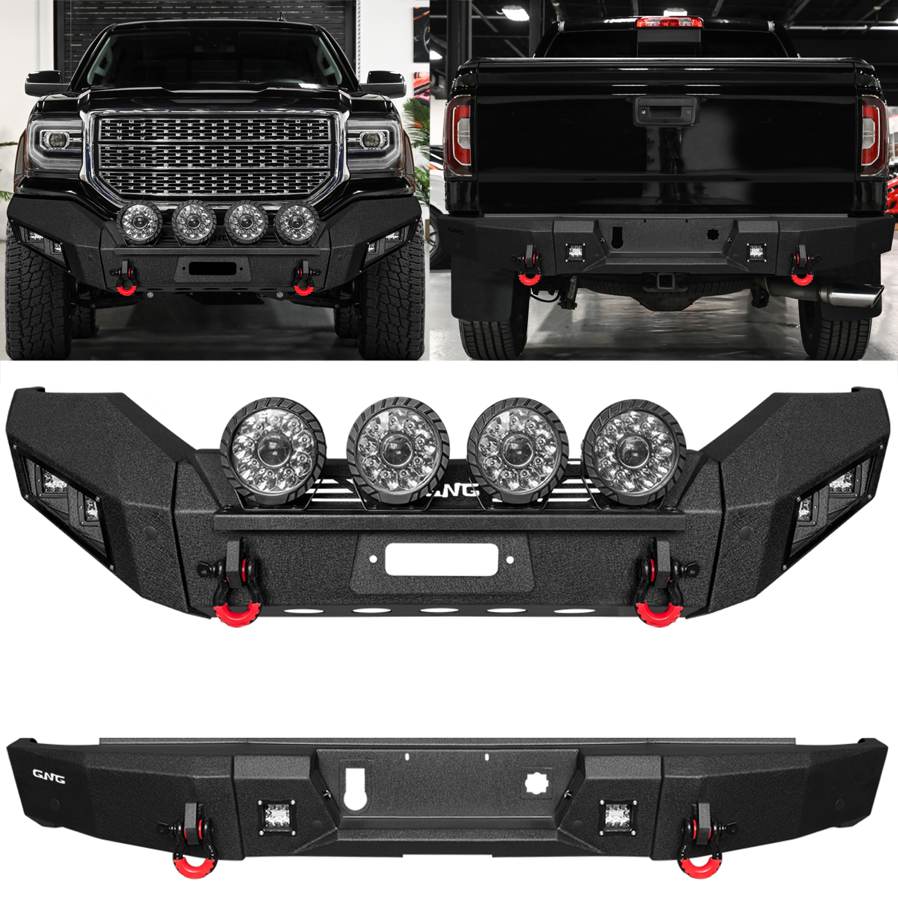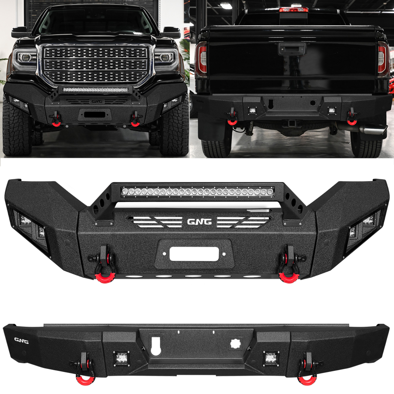 GNG Front and Rear Bumper Fits 2016-2018 GMC Sierra 1500