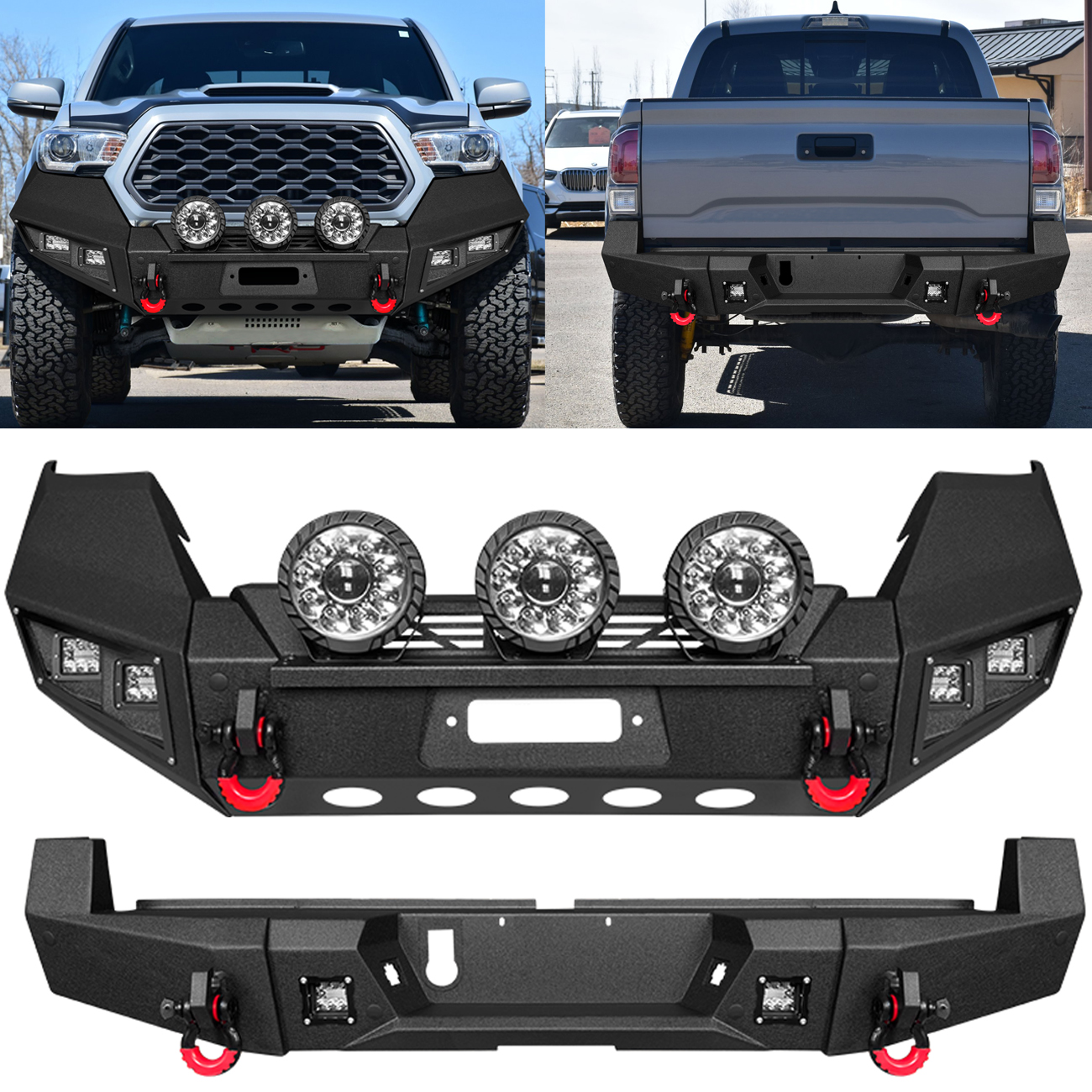 [Comprehensive Protection]: The three-piece structure bumper perfectly fits the body lines.Rugged off-road styling enhances the vehicle’s overall aesthetic, giving it a tough and aggressive look