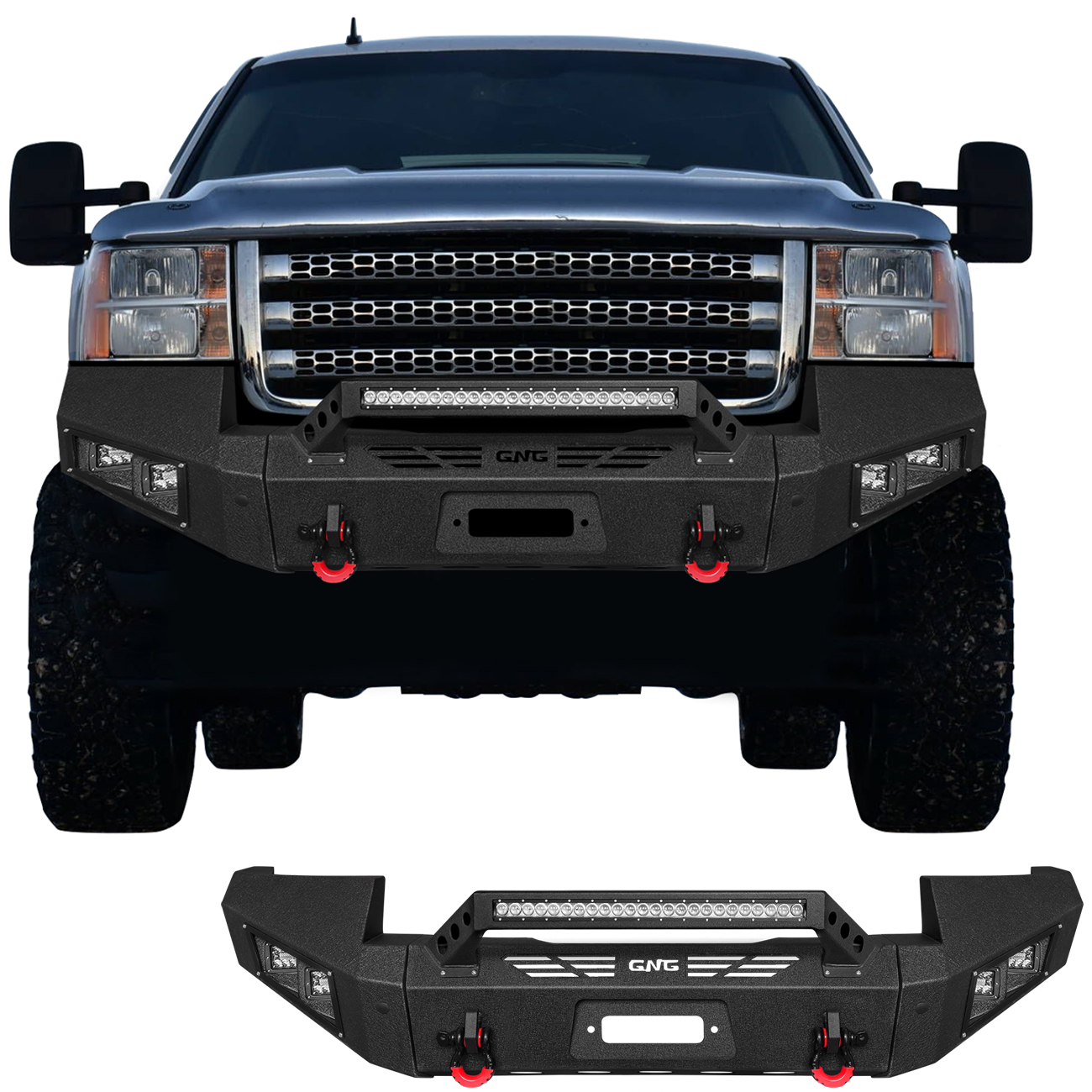 [Product Note]: The bumper does not include a harness connecting the lights and a winch outlet hole trim,the bumper sensor hole does not support the original sensor, and the sensor needs to be purchased separately