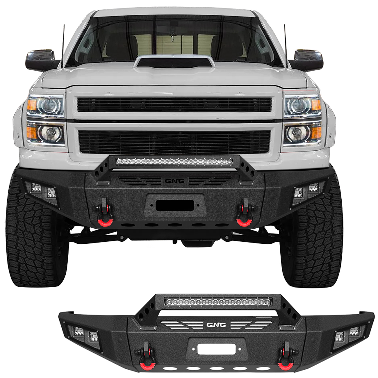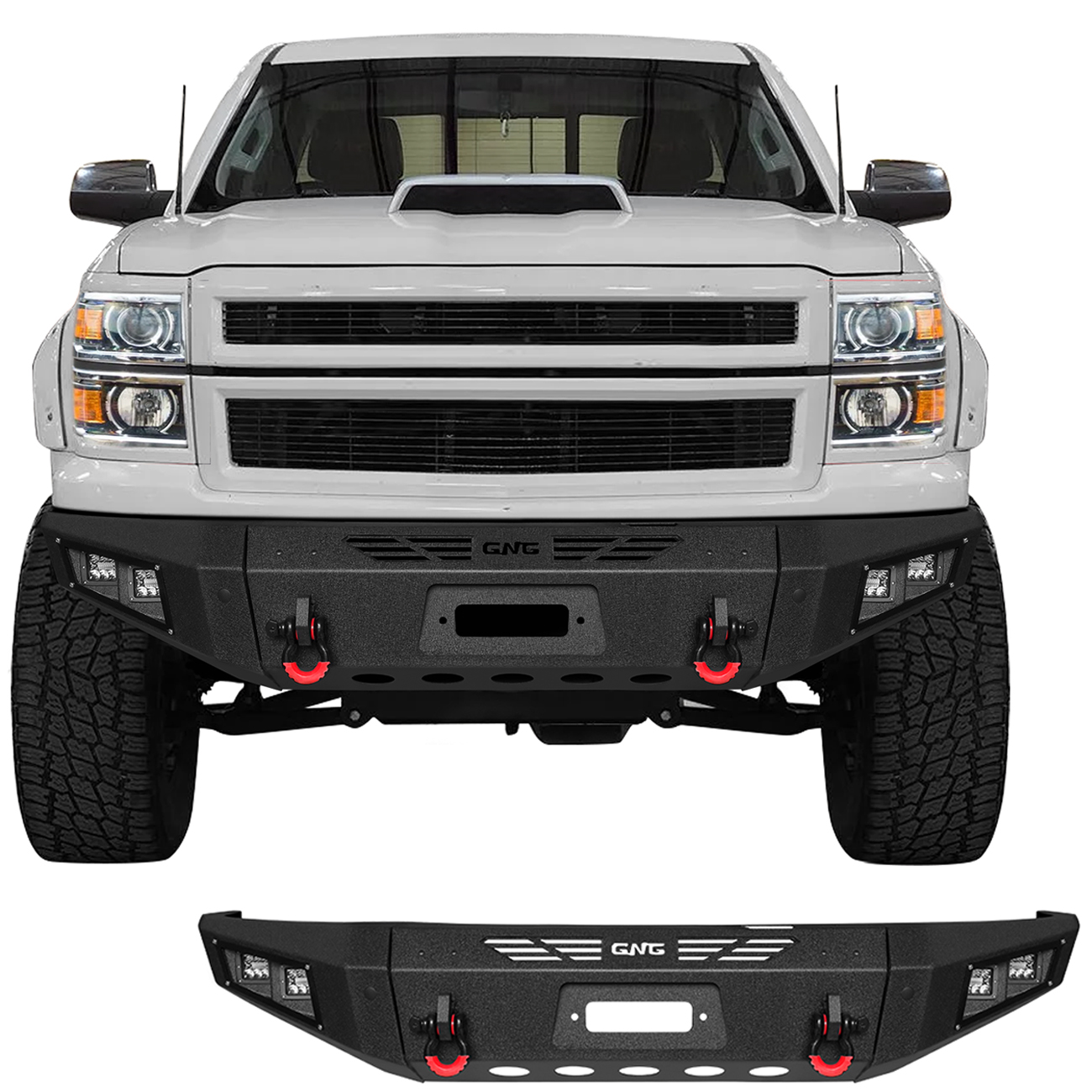 [Product Note]: The bumper does not include a harness connecting the lights and a winch outlet hole trim,the bumper sensor hole does not support the original sensor, and the sensor needs to be purchased separately