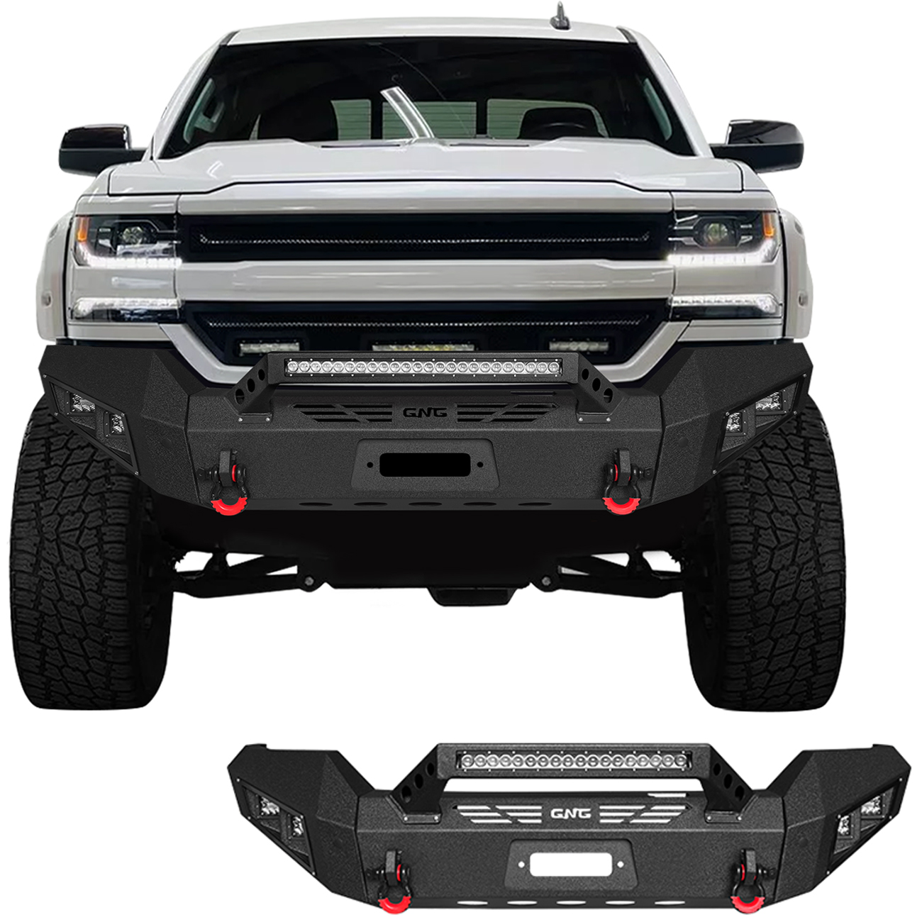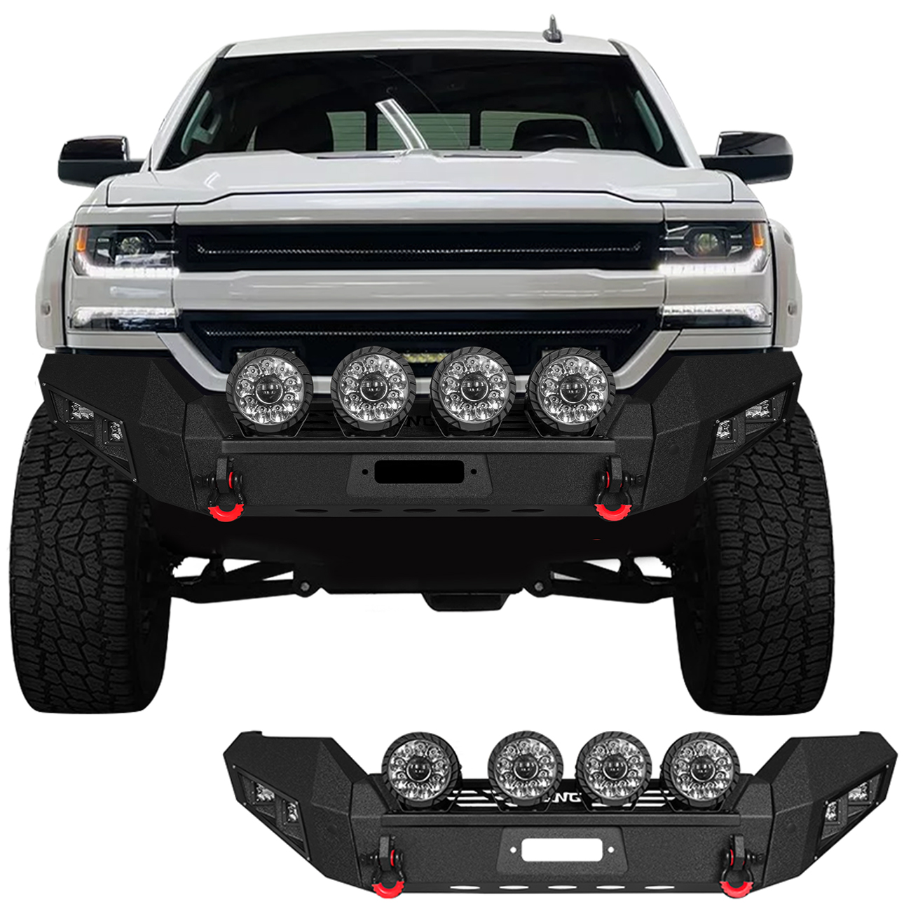 [Product Note]: The bumper does not include a harness connecting the lights and a winch outlet hole trim,the bumper sensor hole does not support the original sensor, and the sensor needs to be purchased separately