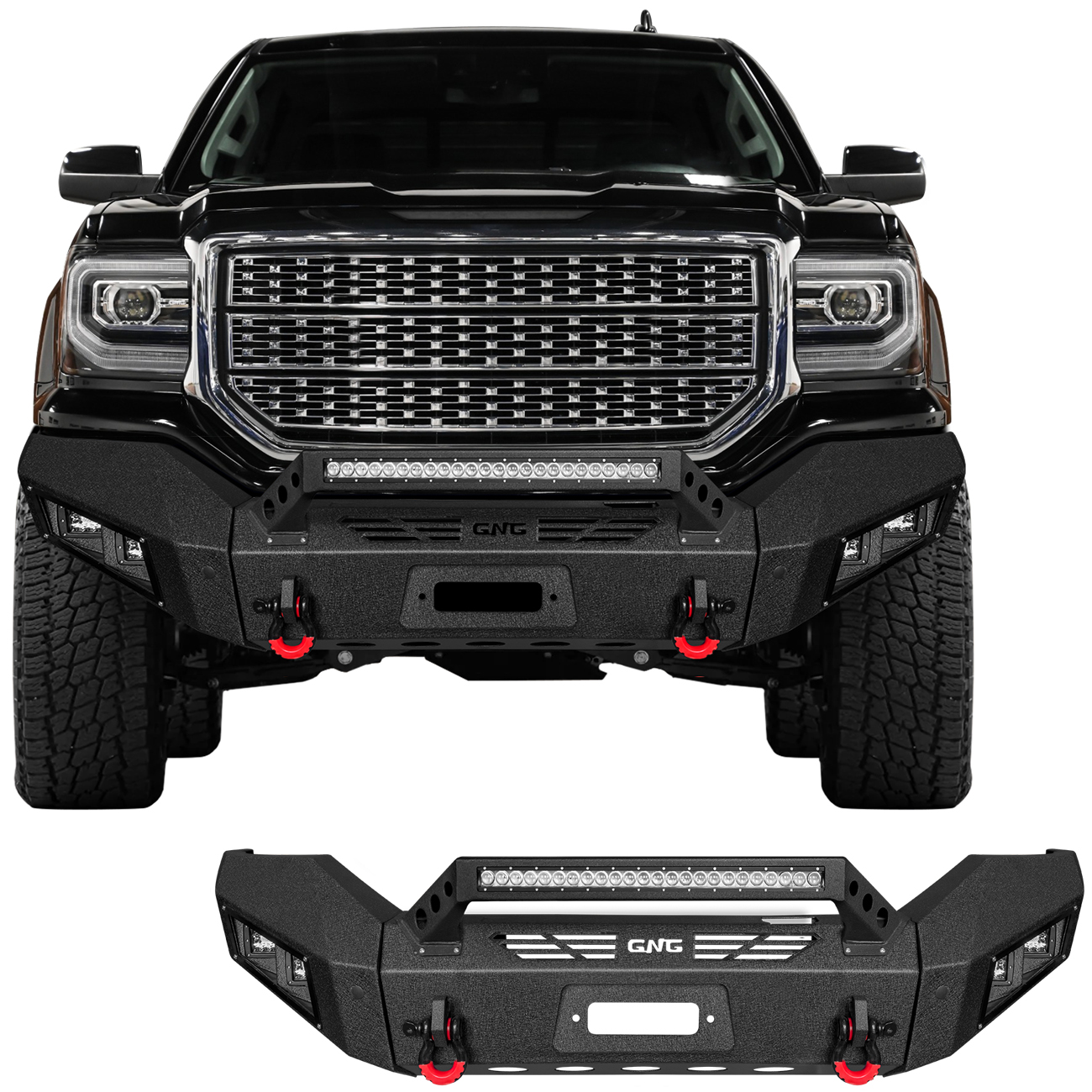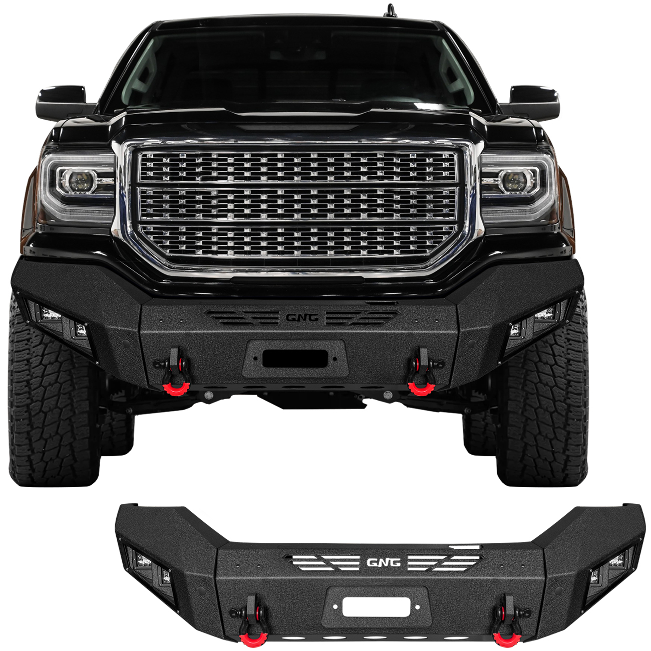 [Product Note]: The bumper does not include a harness connecting the lights and a winch outlet hole trim,the bumper sensor hole does not support the original sensor, and the sensor needs to be purchased separately