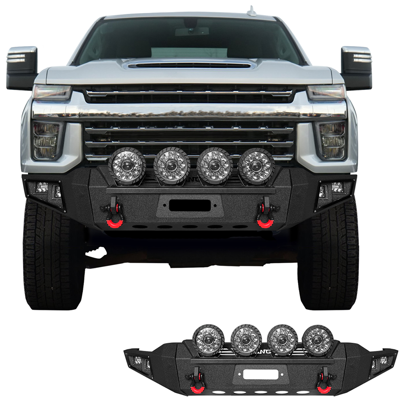 [Product Note]: The bumper does not include a harness connecting the lights and a winch outlet hole trim,the bumper sensor hole does not support the original sensor, and the sensor needs to be purchased separately