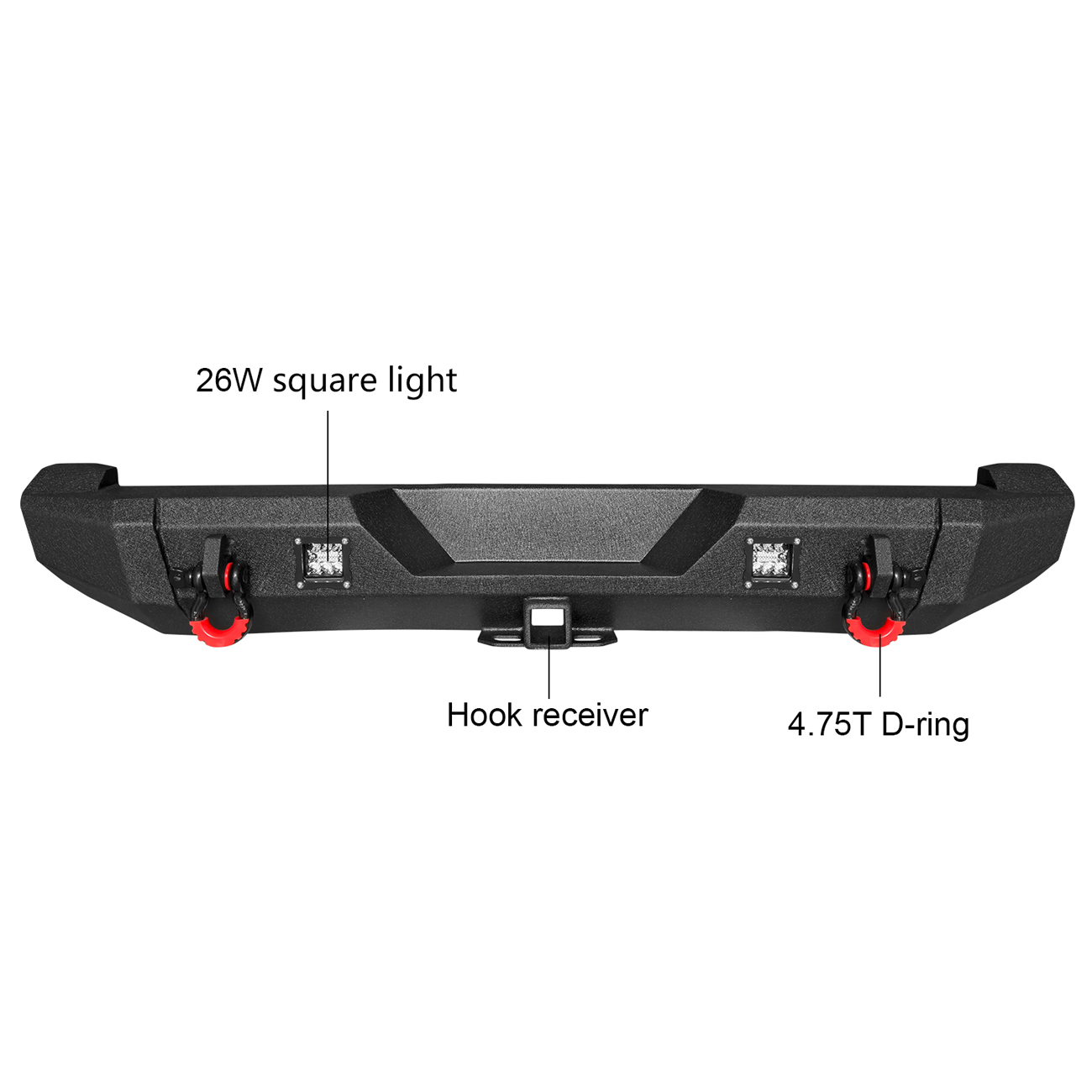 [Comprehensive Protection]: The three-piece structure rear bumper perfectly fits the body lines. Rugged off-road styling enhances the vehicle’s overall aesthetic, giving it a tough and aggressive look