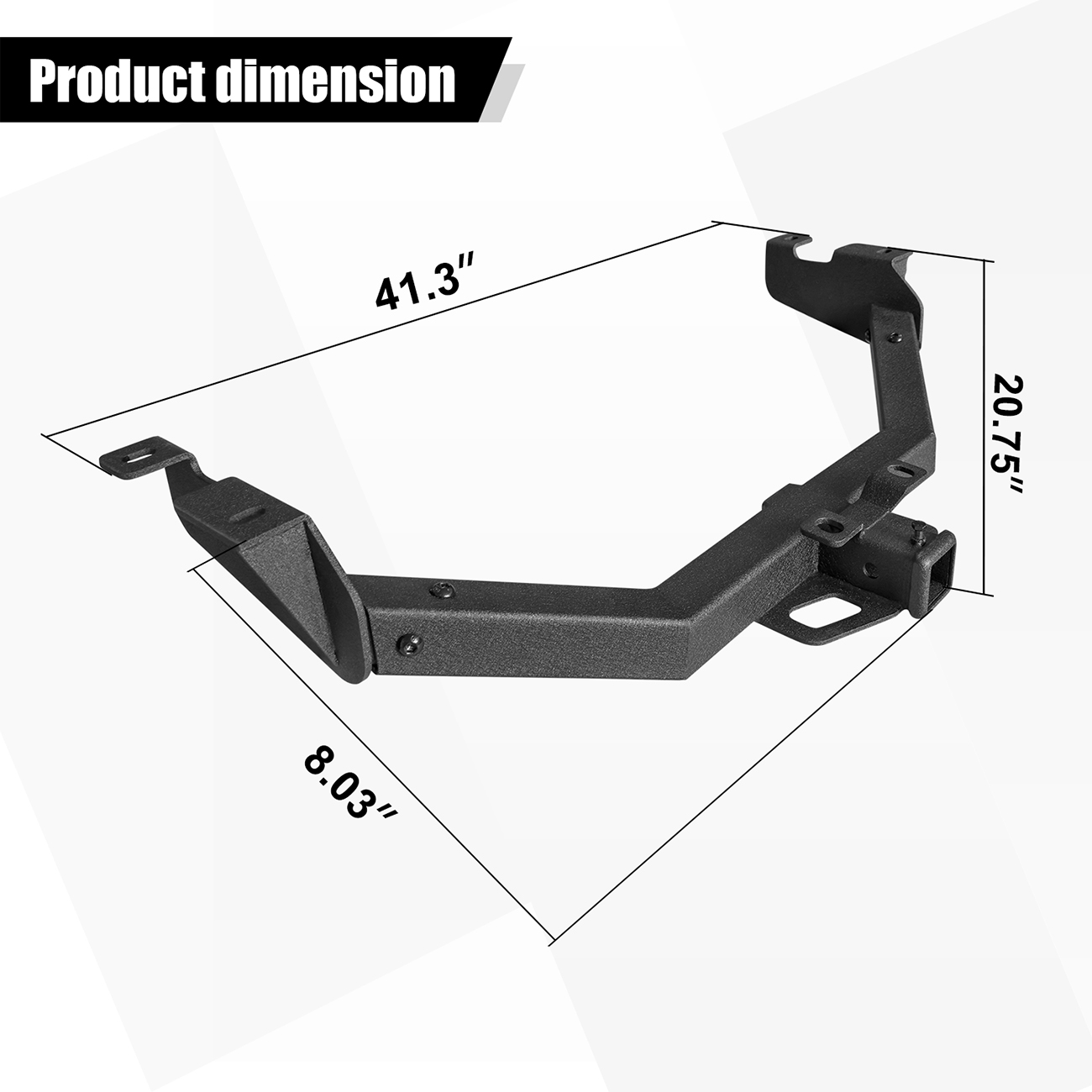 [Construction]: The trailer hitch is made of heavy-duty, high-strength 5/32-inch steel, the mounting bracket is made of 1/4-inch steel, and the trailer hitch weighs approximately 33 pounds.