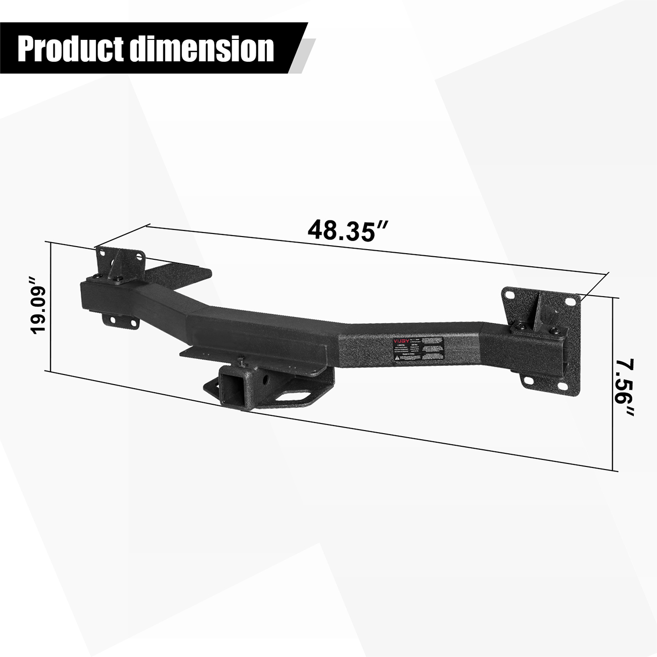 [Construction]: The trailer hitch is made of heavy-duty, high-strength 5/32-inch steel, the mounting bracket is made of 1/4-inch steel, and the trailer hitch weighs approximately 46 pounds