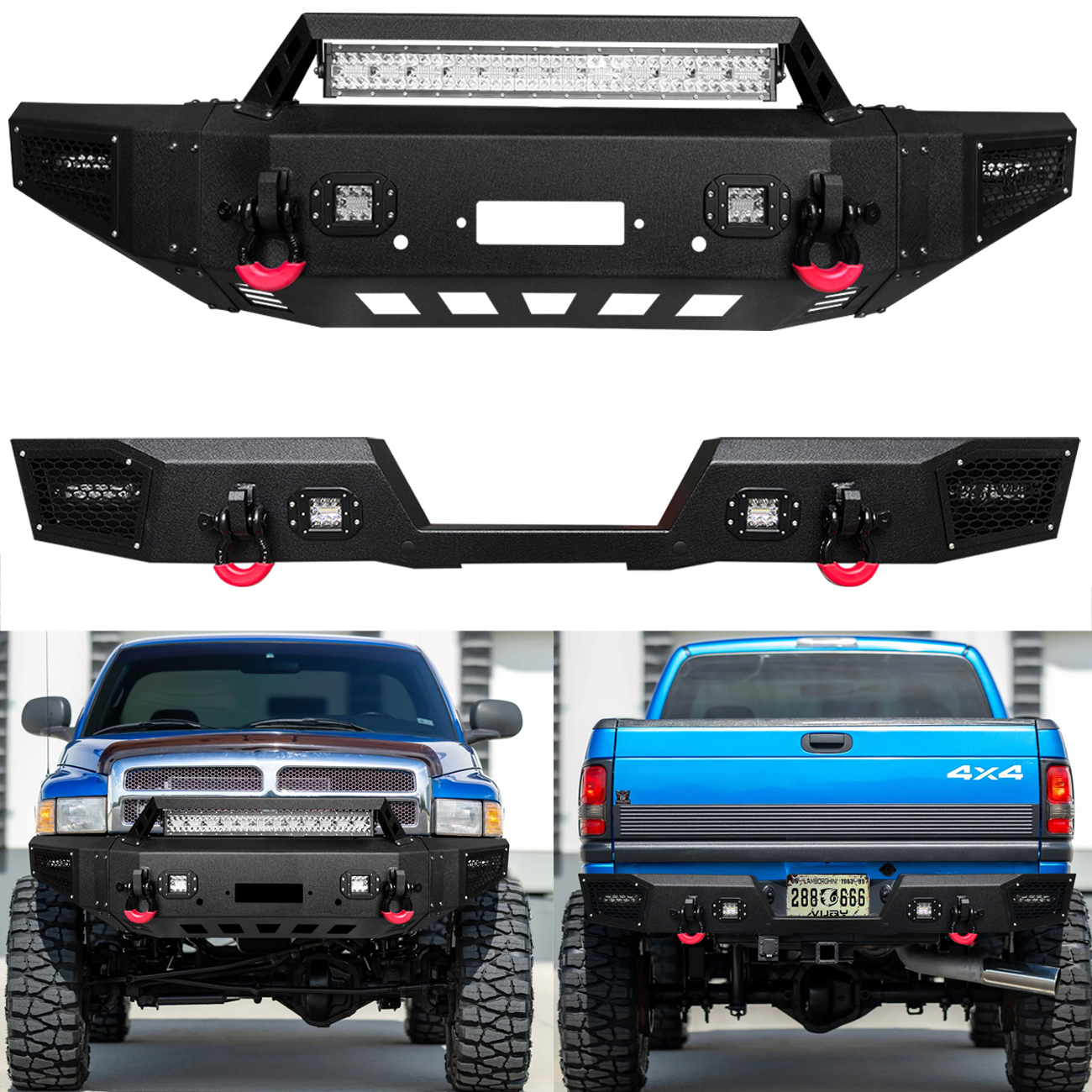 [Heavy Duty Construction]: The bumper body is made of heavy-duty, high-strength 7/64-inch steel, and the winch plate and mounting brackets are made of 3/16-inch steel. The front bumper weighs approximately 136 lbs and the rear bumper weighs approximately 68 lbs, both packages are shipped separately