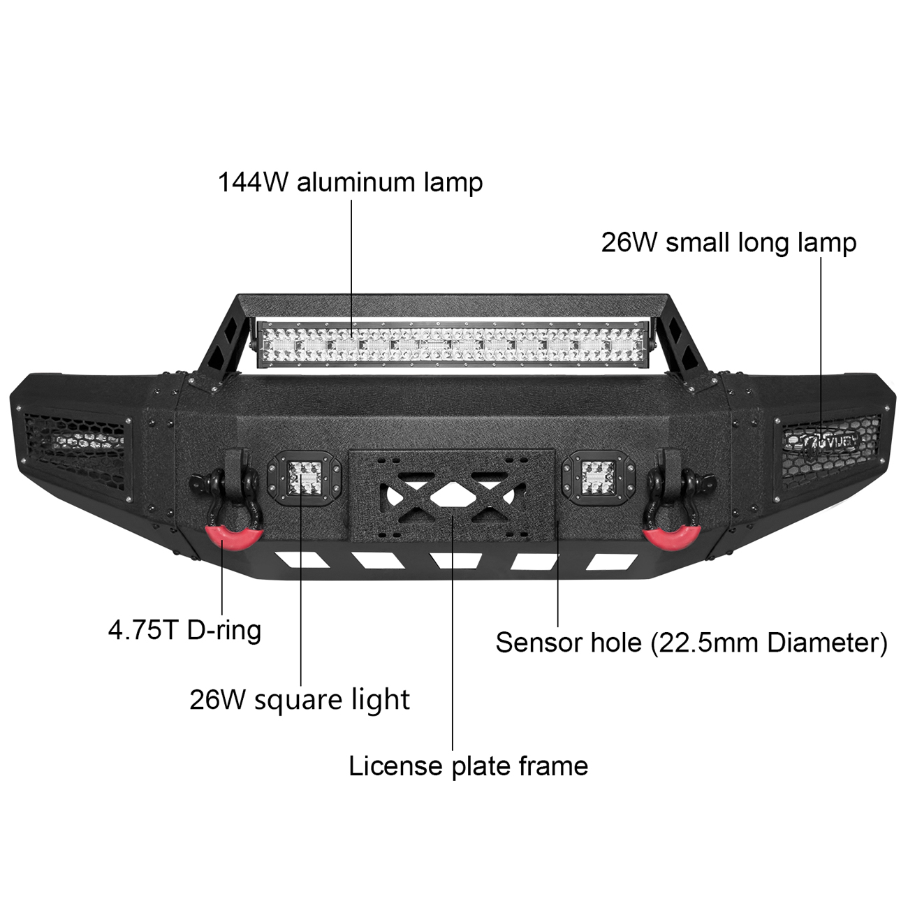 [Practical Design]: The bumper is equipped with a built-in winch plate that can withstand a winch up to 12,000 pounds