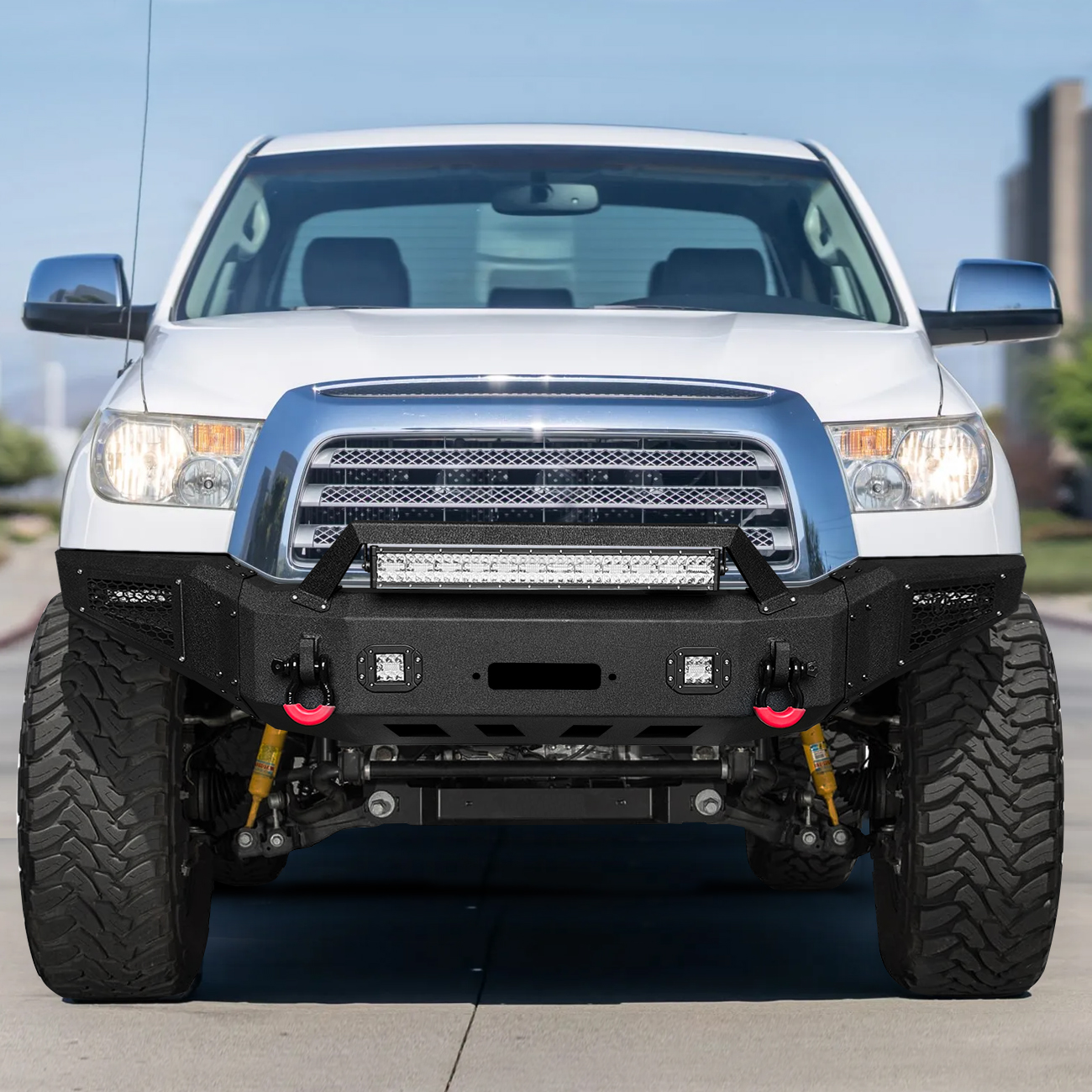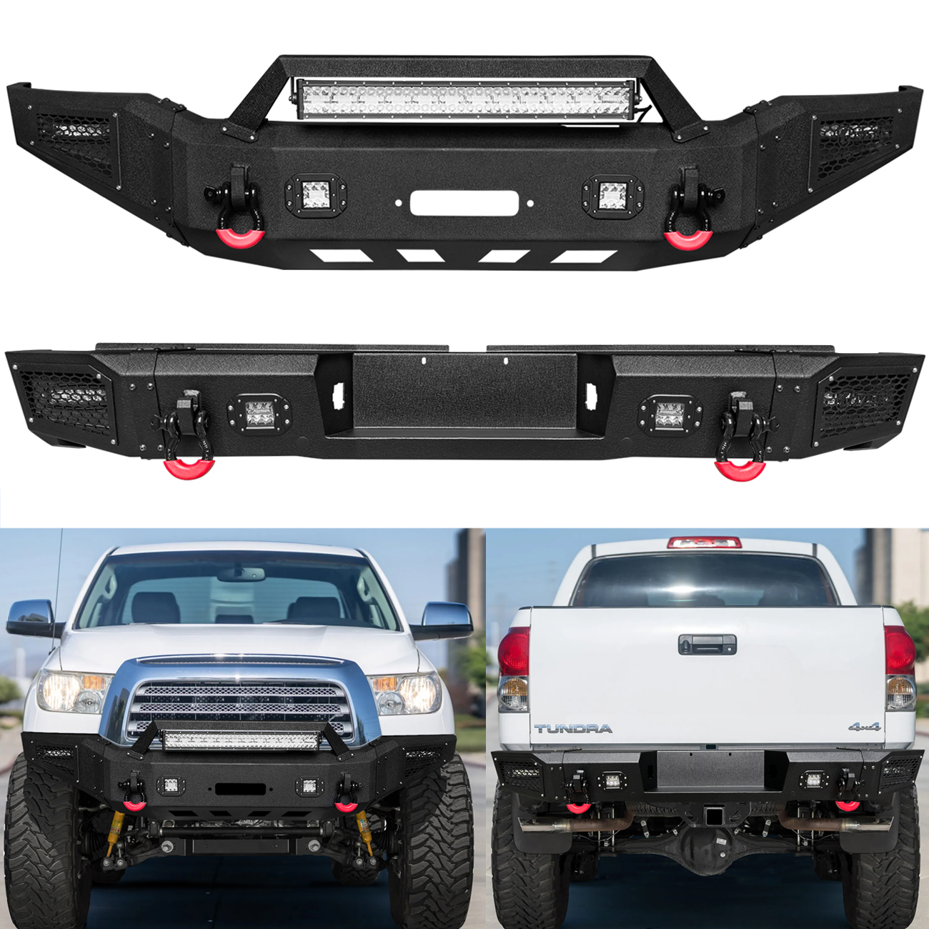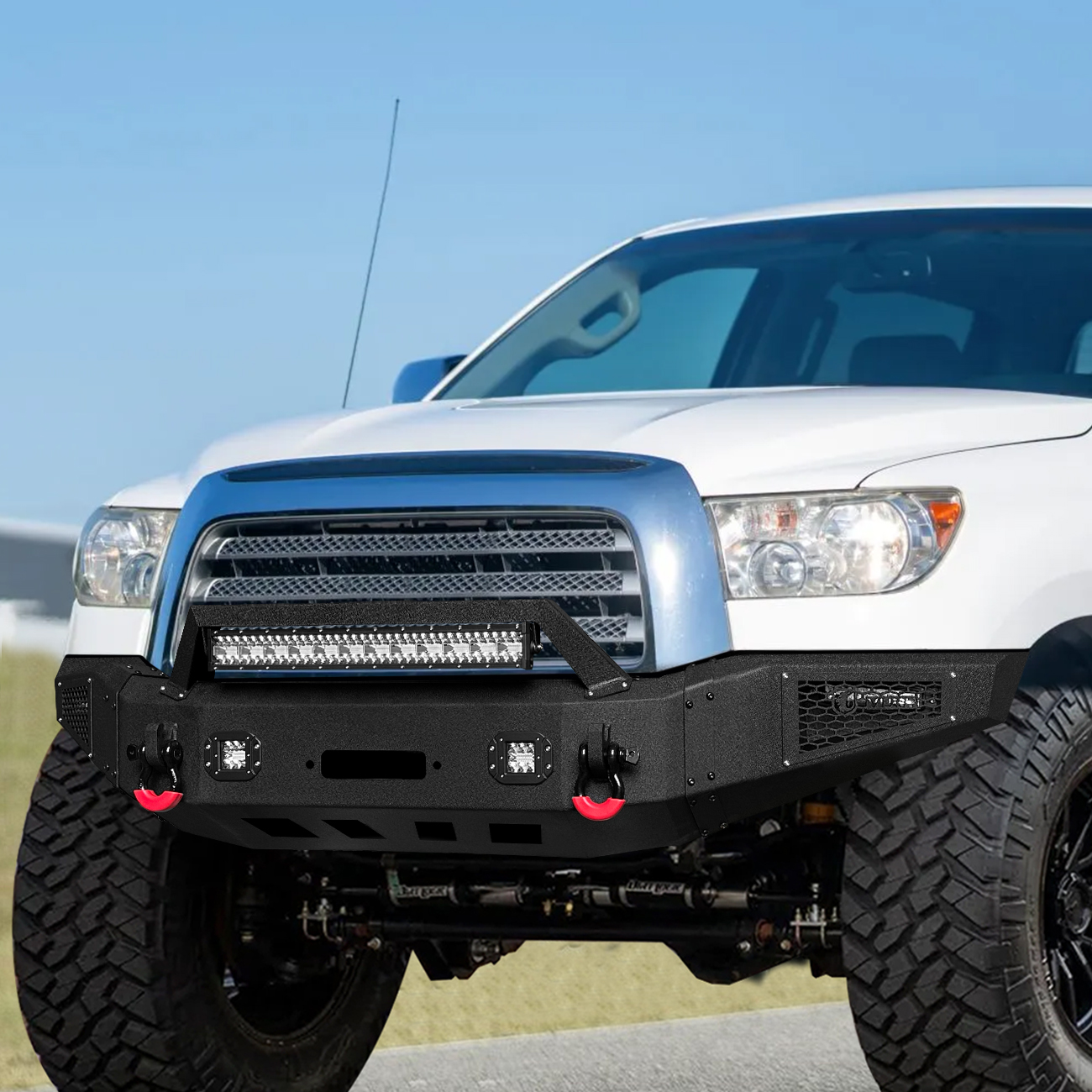 [Comprehensive Protection]: The three-piece structure front bumper perfectly fits the body lines. Rugged off-road styling enhances the vehicle’s overall aesthetic, giving it a tough and aggressive look