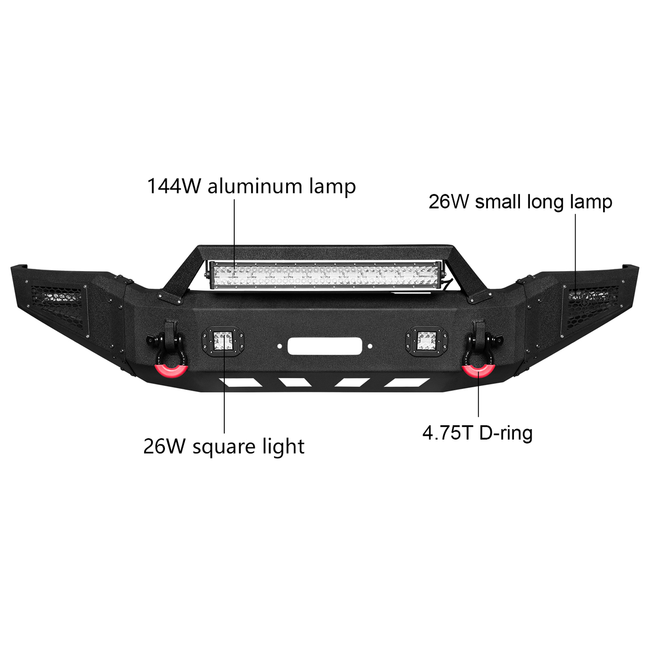[Practical Design]: The bumper is equipped with a built-in winch plate that can withstand a winch up to 12,000 pounds