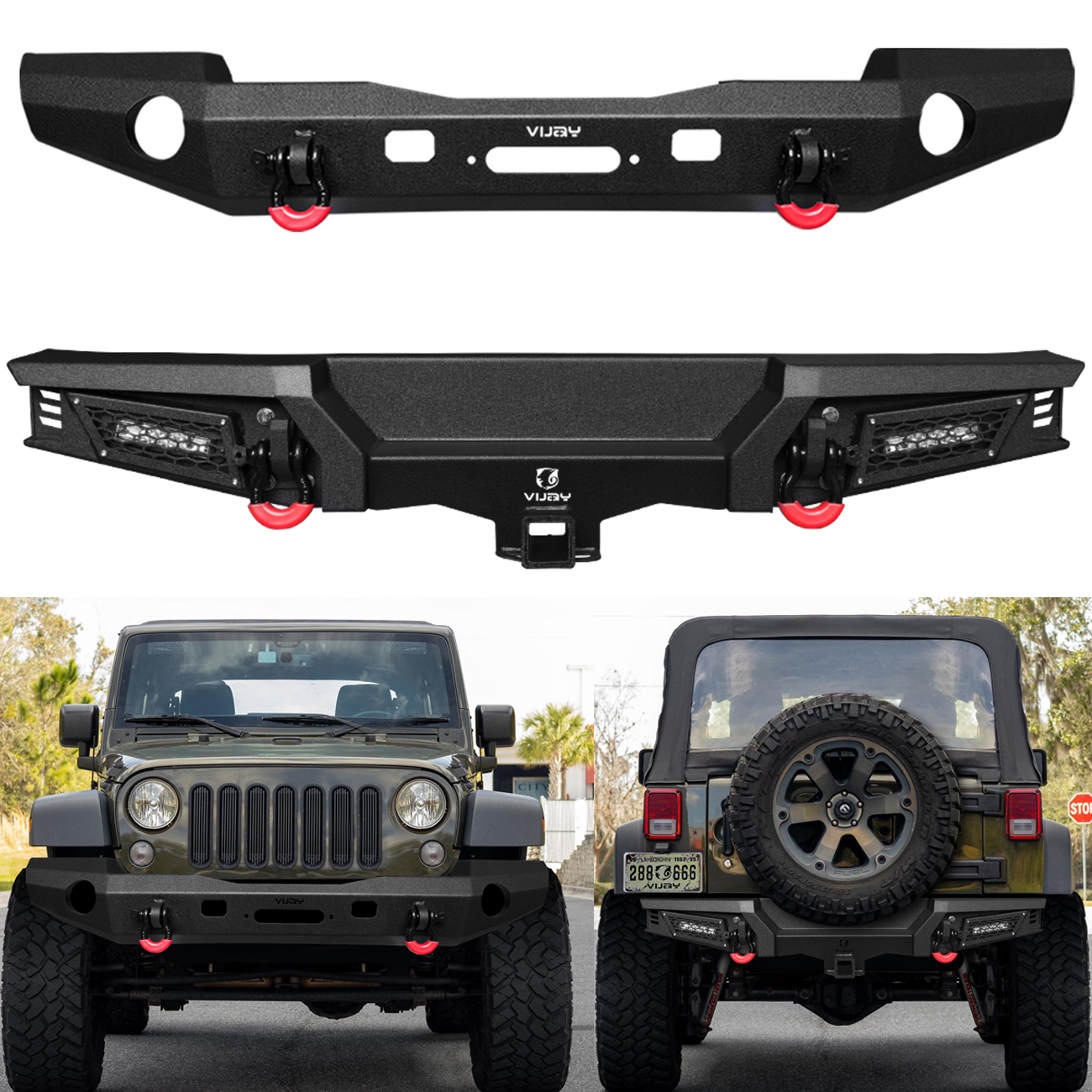 [Construction]: The bumper body is made of heavy-duty, high-strength 9/64-inch steel, and the winch plate and mounting brackets are made of 3/16-inch steel. The front bumper weighs approximately 79 lbs and the rear bumper weighs approximately 79 lbs, both packages are shipped separately