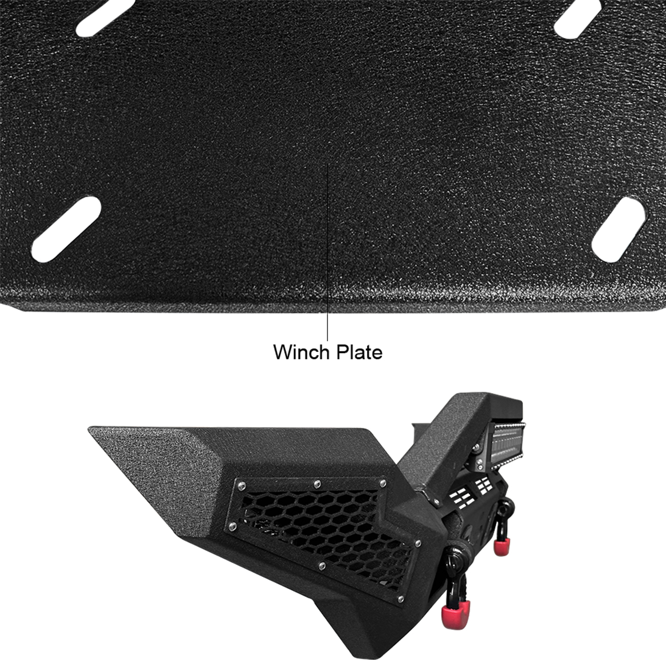 [Practical Design]: The bumper is equipped with a built-in winch plate that can withstand a winch up to 12,000 pounds