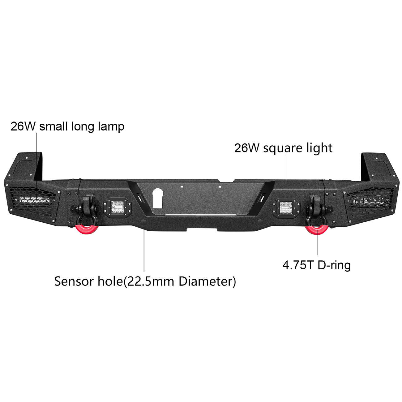 [Product Note]: The bumper does not include the wiring harness to connect the lights,the rear bumper sensor hole does not support the original sensor, and the sensor needs to be purchased separately