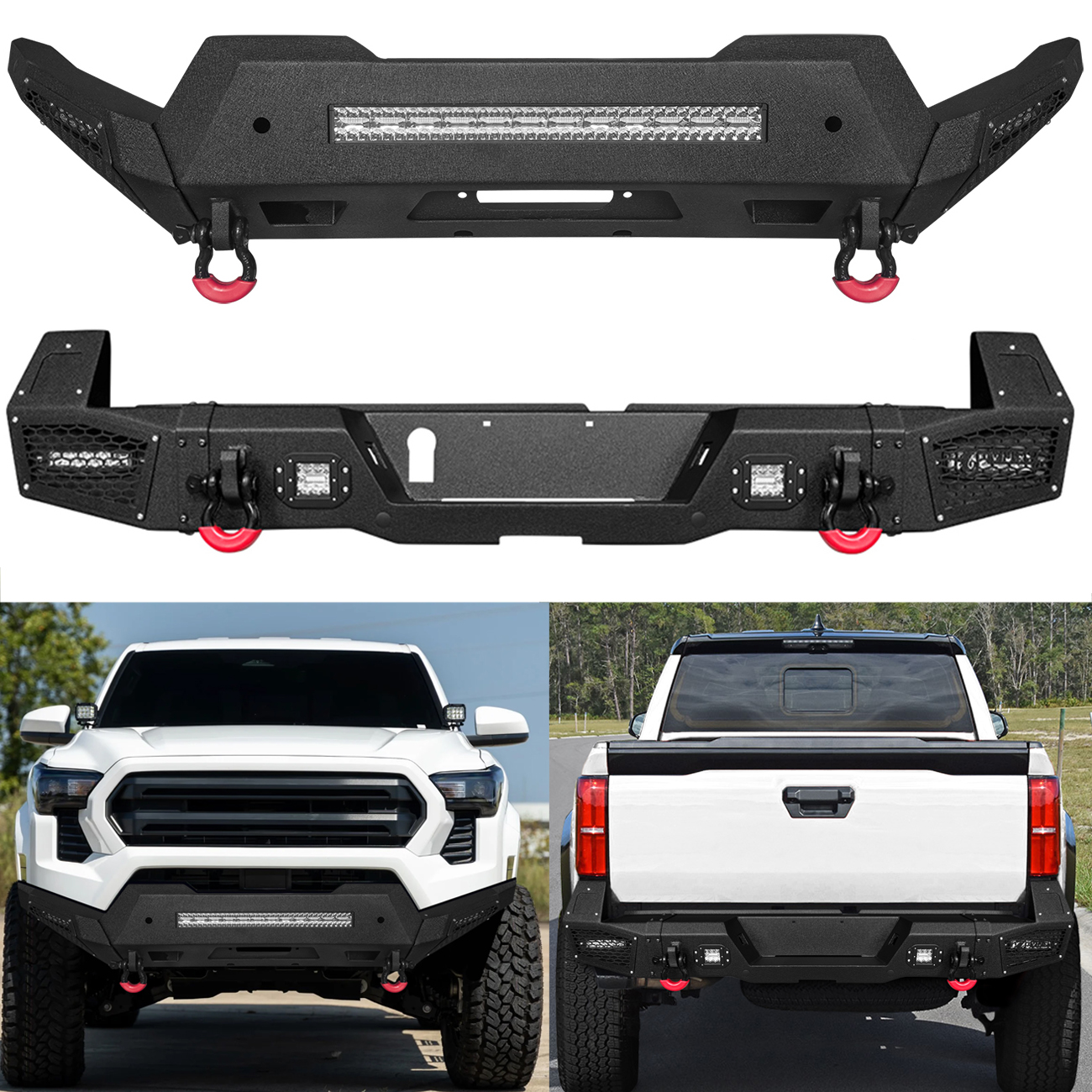 [Comprehensive Protection]: The three-piece structure bumper perfectly fits the body lines. Rugged off-road styling enhances the vehicle’s overall aesthetic, giving it a tough and aggressive look