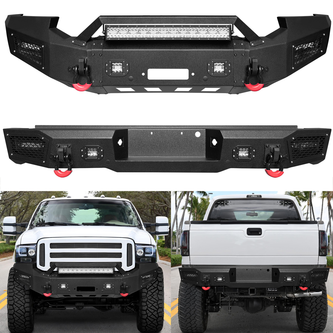 [Heavy Duty Construction]: The bumper body is made of heavy-duty, high-strength 7/64-inch steel, and the winch plate and mounting brackets are made of 3/16-inch steel. The front bumper weighs approximately 141 lbs and the rear bumper weighs approximately 87 lbs, both packages are shipped separately