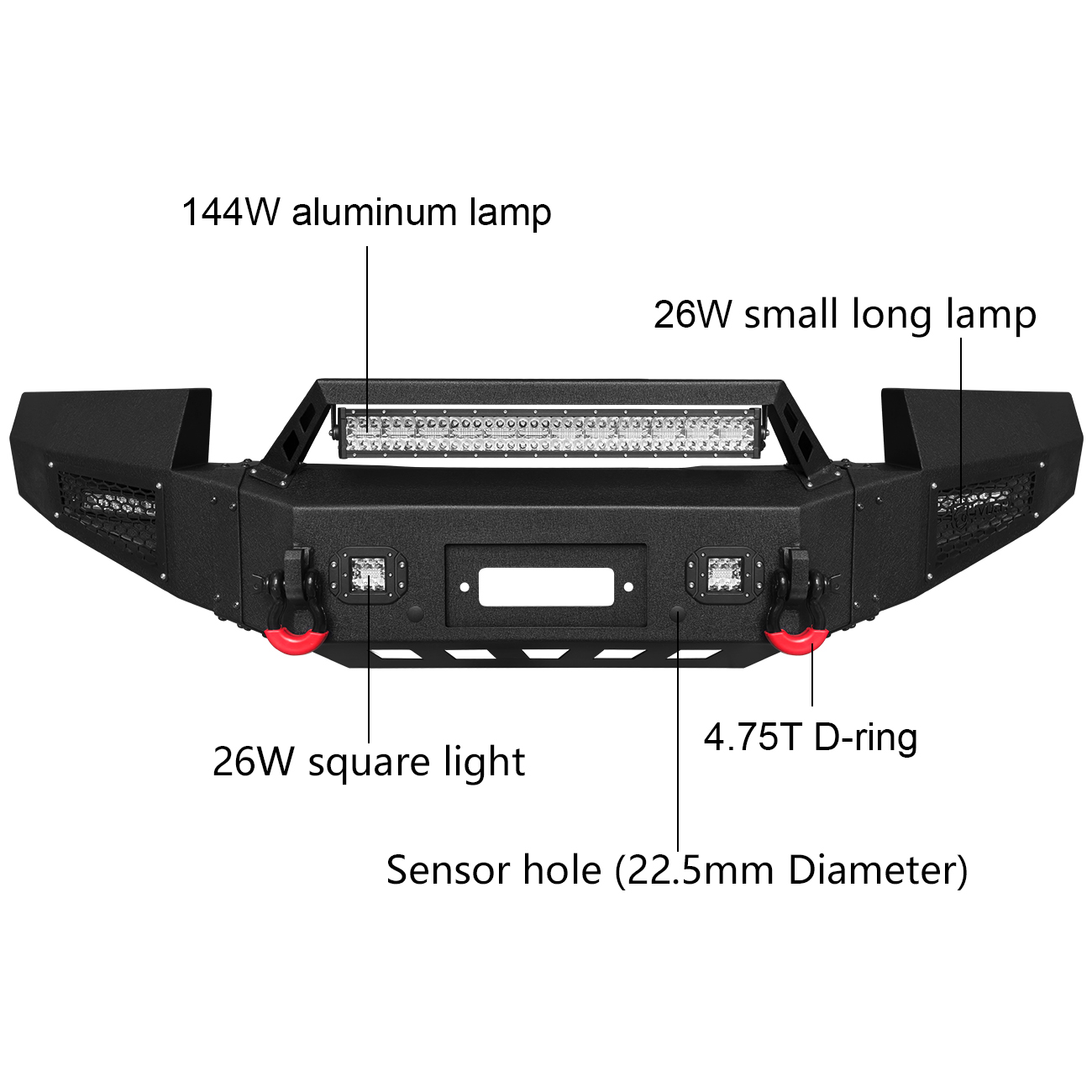 [Product Note]: The bumper does not include the wiring harness to connect the lights, the sensor hole does not support the original sensor, and the sensor needs to be purchased separately