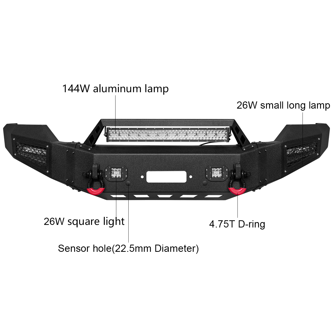 [Product Note]: The bumper does not include the wiring harness to connect the lights, the sensor hole does not support the original sensor, and the sensor needs to be purchased separately