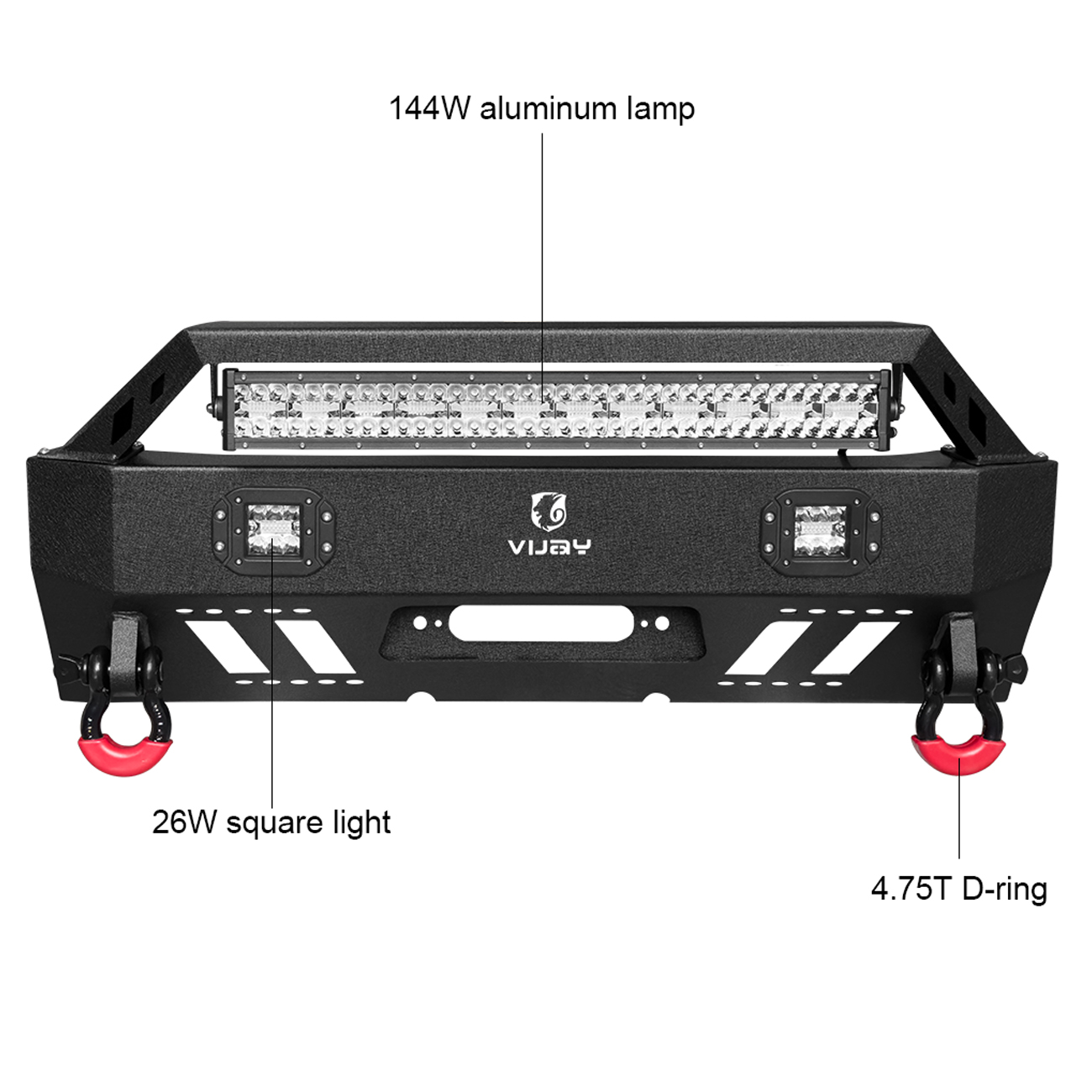 [Practical Design]: The bumper is equipped with a built-in winch plate that can withstand a winch up to 12,000 pounds