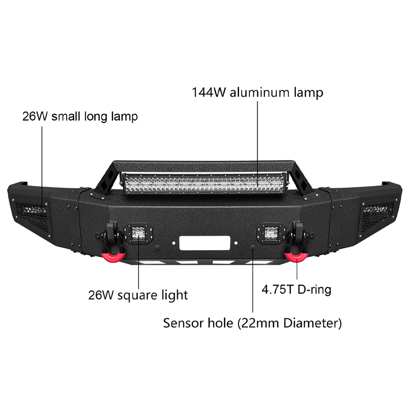 [Product Note]: The bumper does not include the wiring harness to connect the lights, the sensor hole does not support the original sensor, and the sensor needs to be purchased separately
