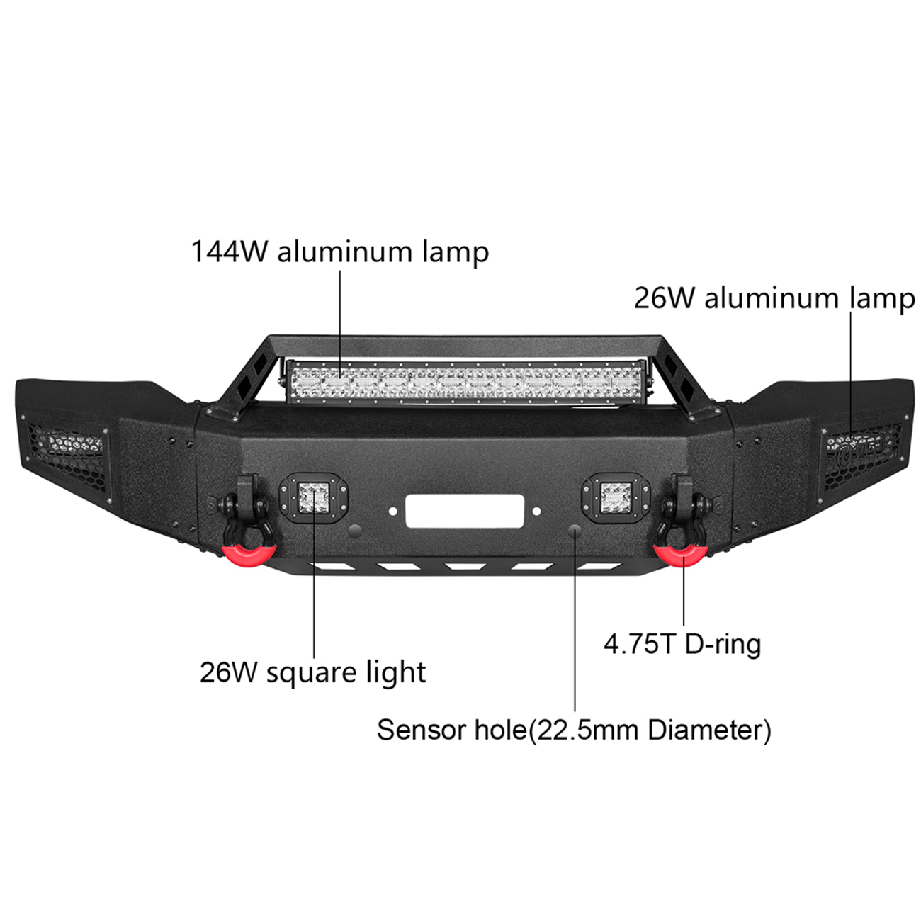 [Product Note]: The bumper does not include the wiring harness to connect the lights, the sensor hole does not support the original sensor, and the sensor needs to be purchased separately