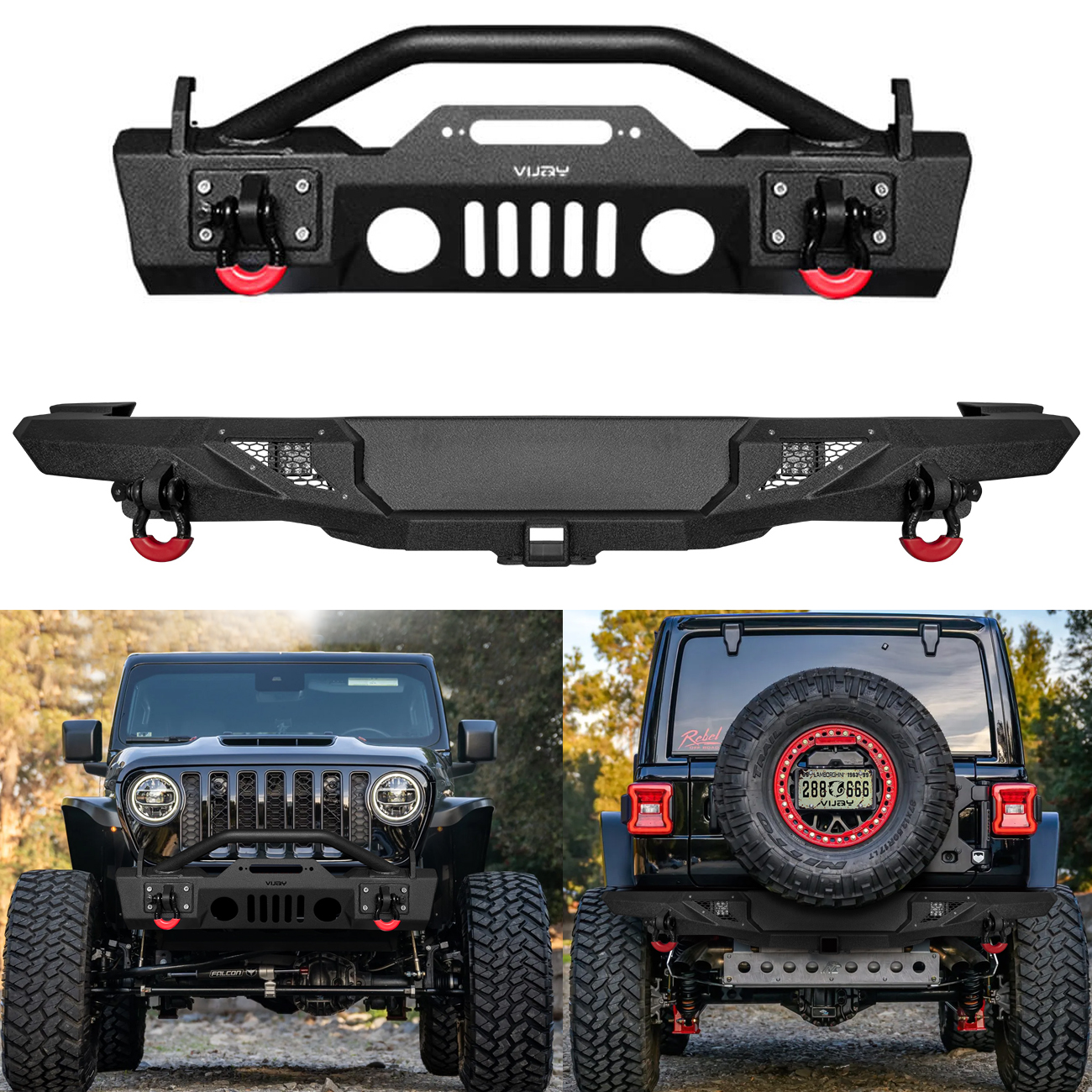 [Heavy Duty Construction]: The bumper body is made of heavy-duty, high-strength 9/64-inch steel, and the winch plate and mounting brackets are made of 3/16-inch steel. The front bumper weighs approximately 66 lbs and the rear bumper weighs approximately 77 lbs, both packages are shipped separately