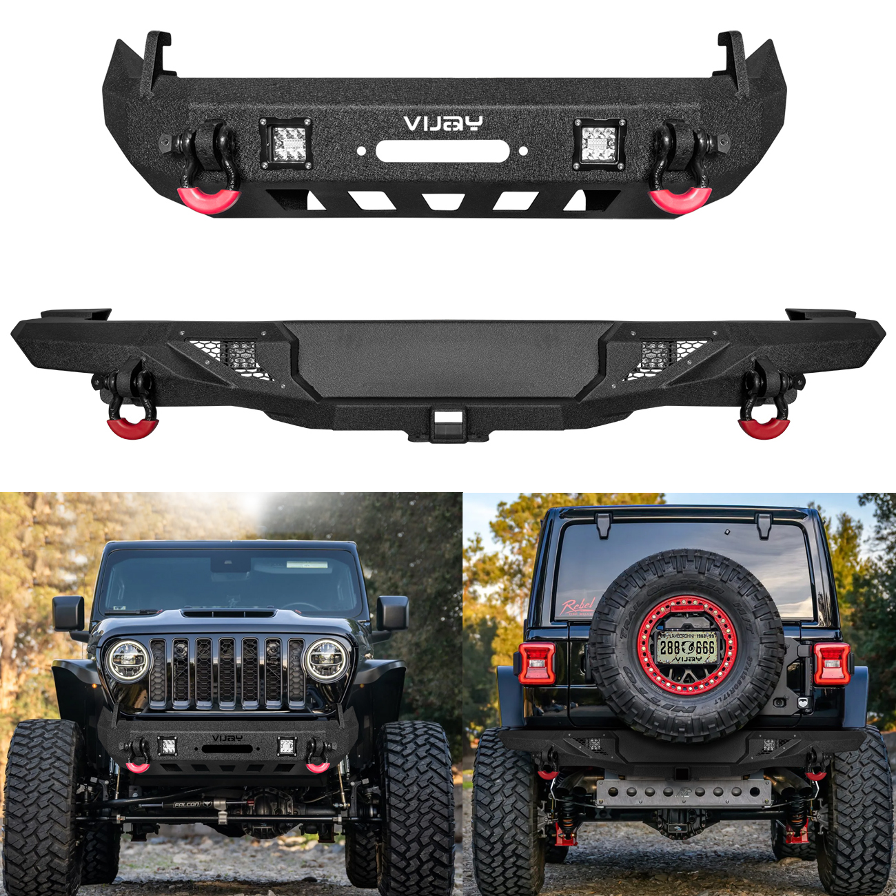 [Heavy Duty Construction]: The bumper body is made of heavy-duty, high-strength 9/64-inch steel, and the winch plate and mounting brackets are made of 3/16-inch steel. The front bumper weighs approximately 75 lbs and the rear bumper weighs approximately 73 lbs, both packages are shipped separately