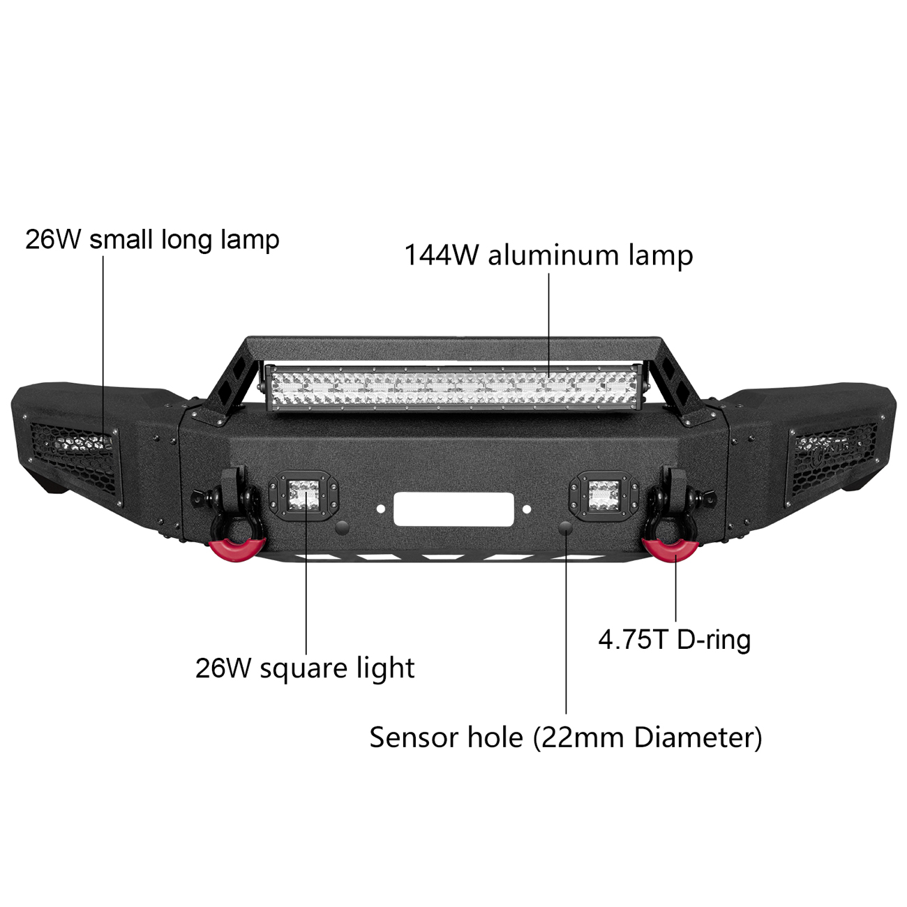 [Practical Design]: The bumper is equipped with a built-in winch plate that can withstand a winch up to 12,000 pounds