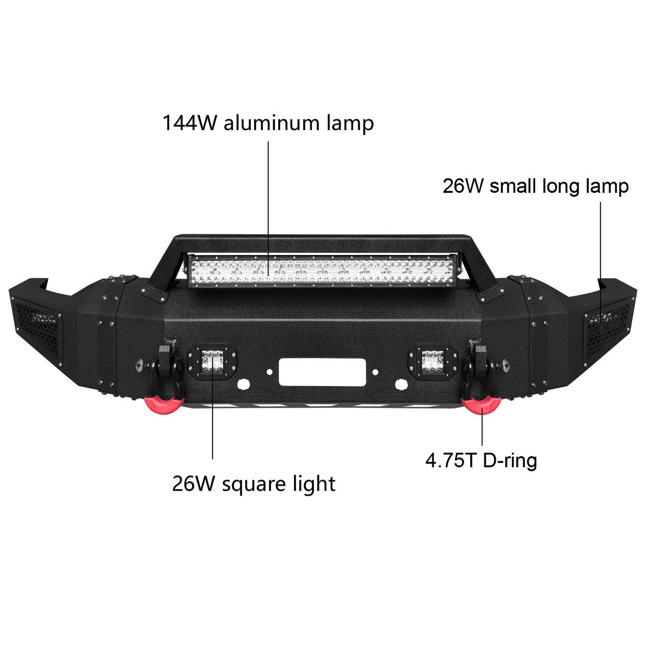 [Practical Design]: The bumper is equipped with a built-in winch plate that can withstand a winch up to 12,000 pounds