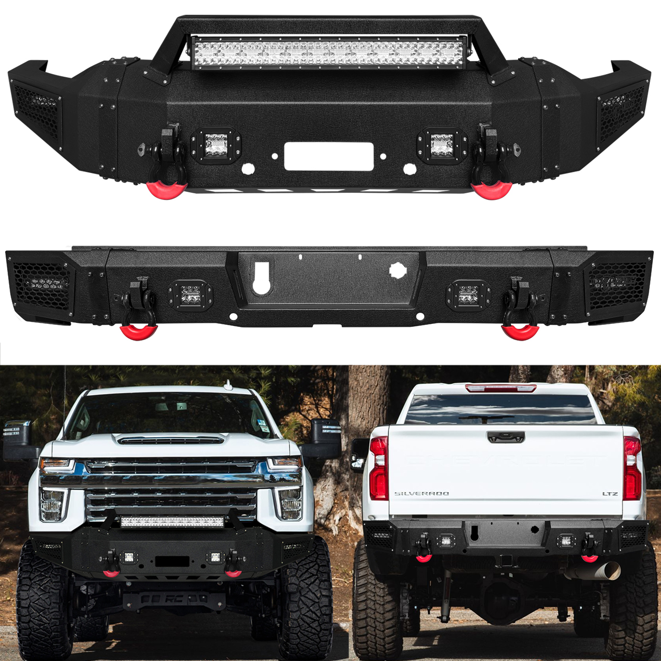 Vijay Front and Rear Bumper Fits 2020-2023 Chevy Silverado 2500/3500