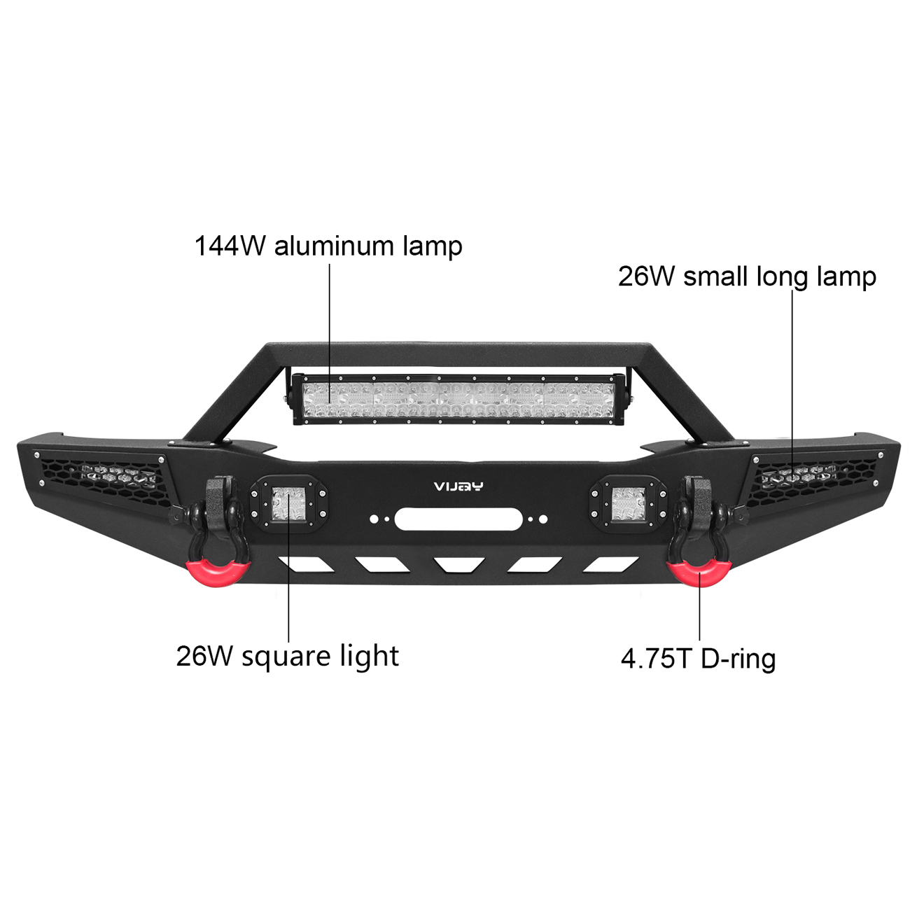 [Practical Design]: The bumper is equipped with a built-in winch plate that can withstand a winch up to 12,000 pounds