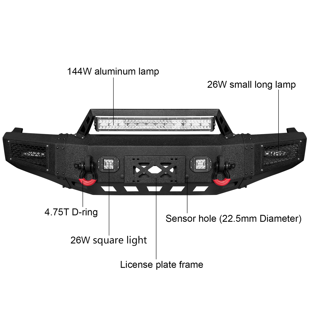 [Easy to Install]: Bumper requires no cutting, drilling or modification. Replace your original stock bumper with a factory mounting point direct bolt-on upgrade. Comes with mounting hardware kit and installation instructions.(Pickup truck needs cutting or modifications)