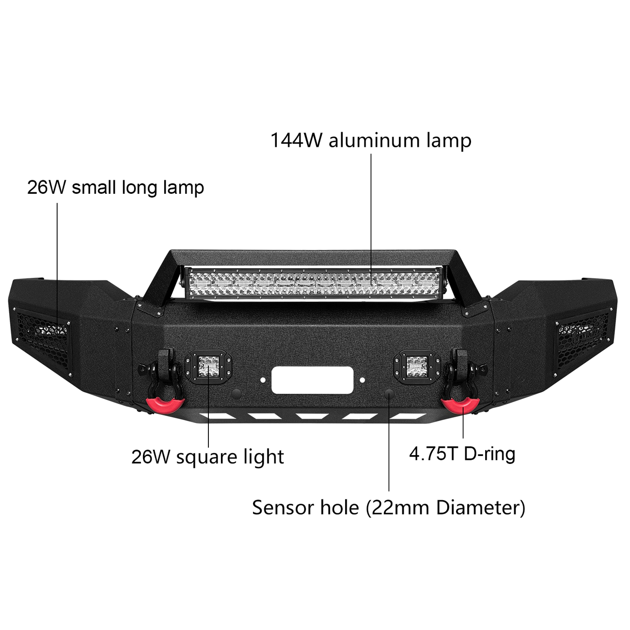 [Practical Design]: The bumper is equipped with a built-in winch plate that can withstand a winch up to 12,000 pounds.