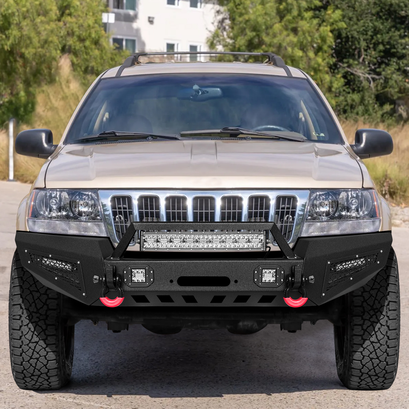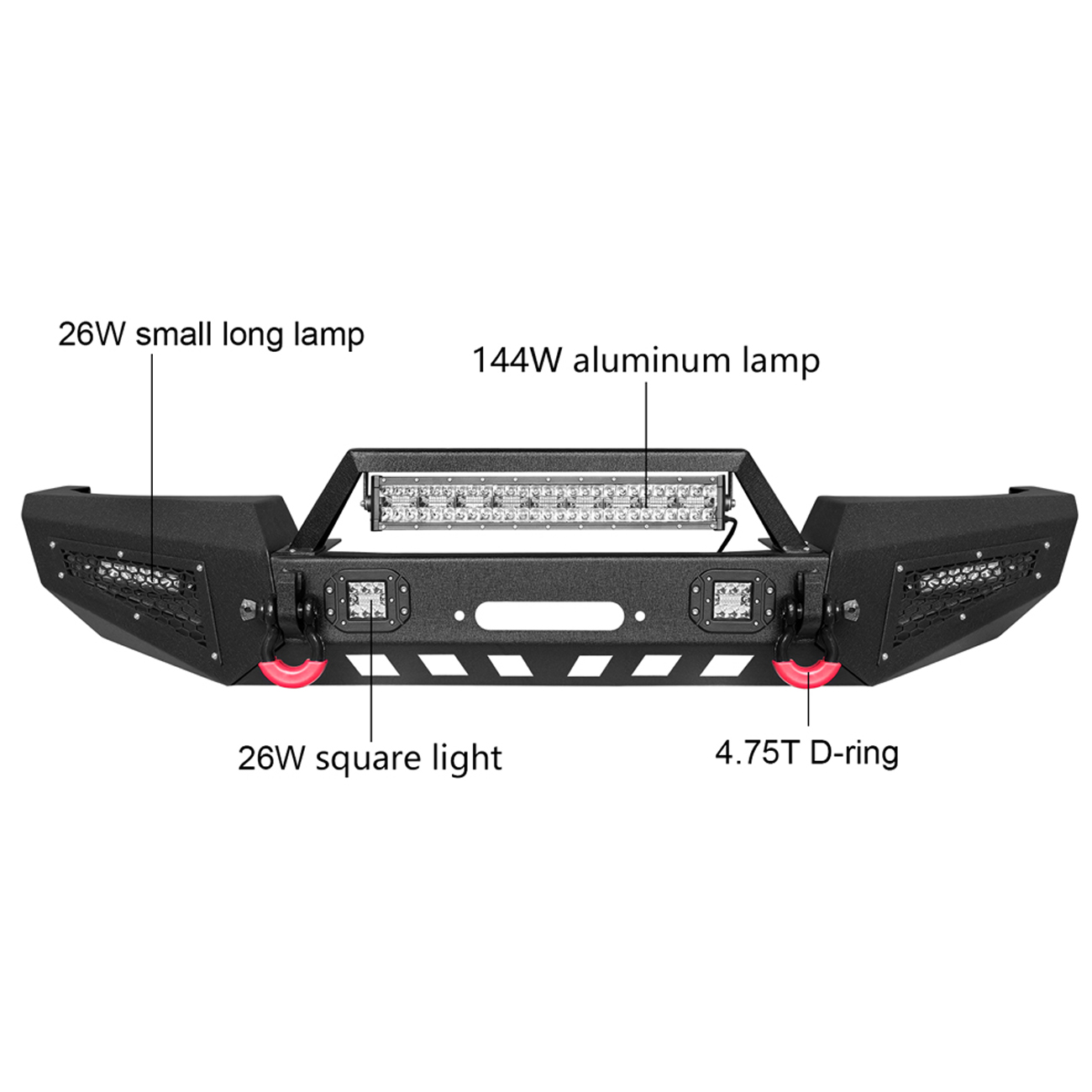 [Comprehensive Protection]: The three-piece structure front bumper perfectly fits the body lines. Rugged off-road styling enhances the vehicle’s overall aesthetic, giving it a tough and aggressive look