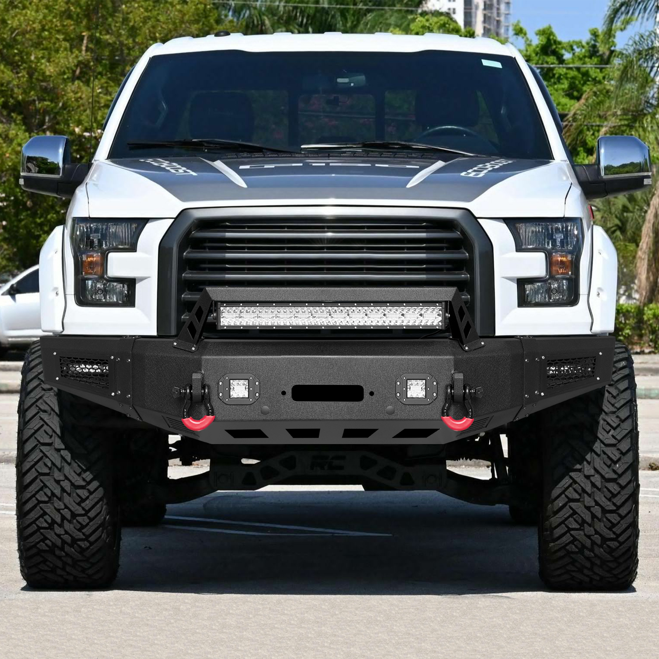 [Practical Design]: The bumper is equipped with a built-in winch plate that can withstand a winch up to 12,000 pounds