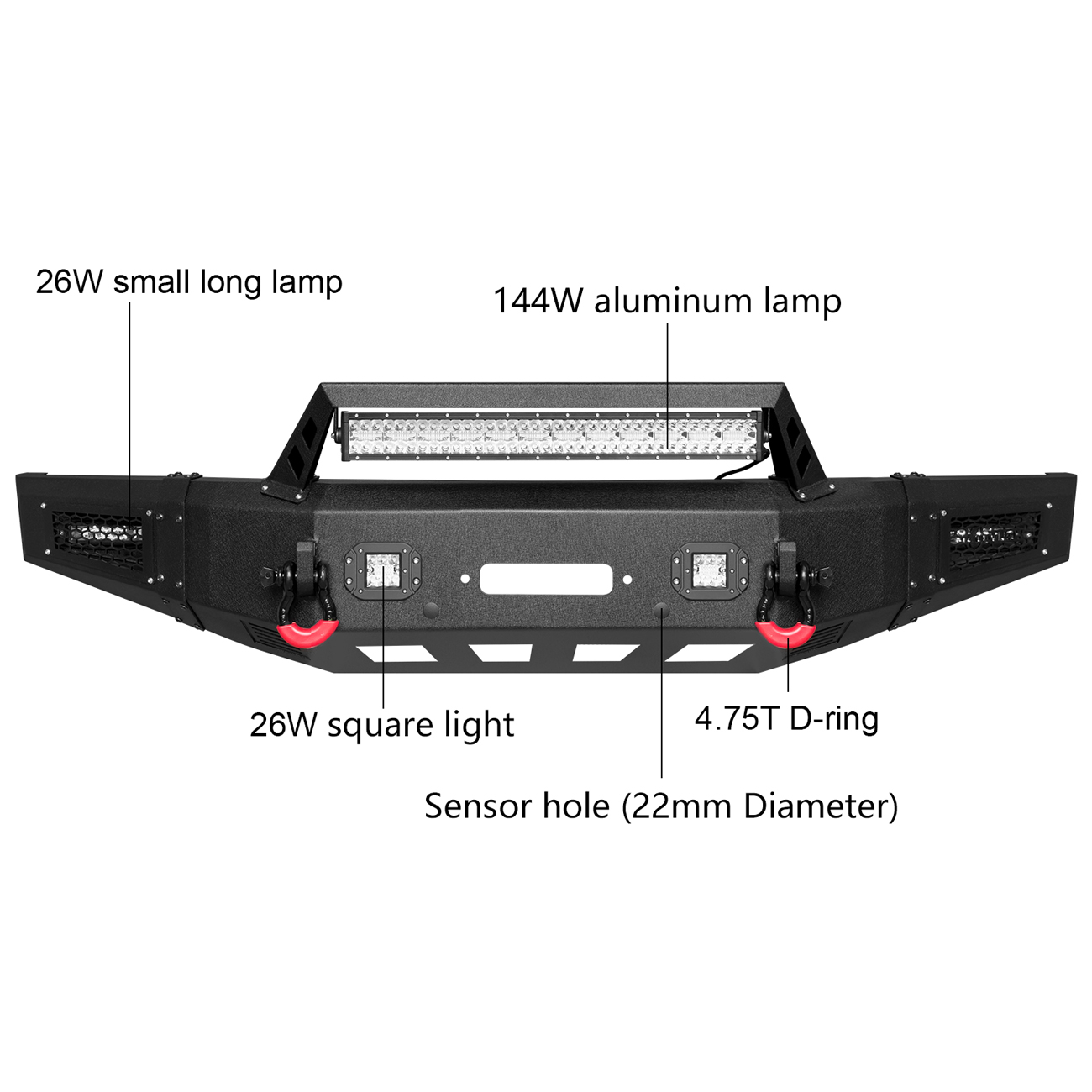 [Product Note]: The bumper does not include the wiring harness to connect the lights, the sensor hole does not support the original sensor, and the sensor needs to be purchased separately