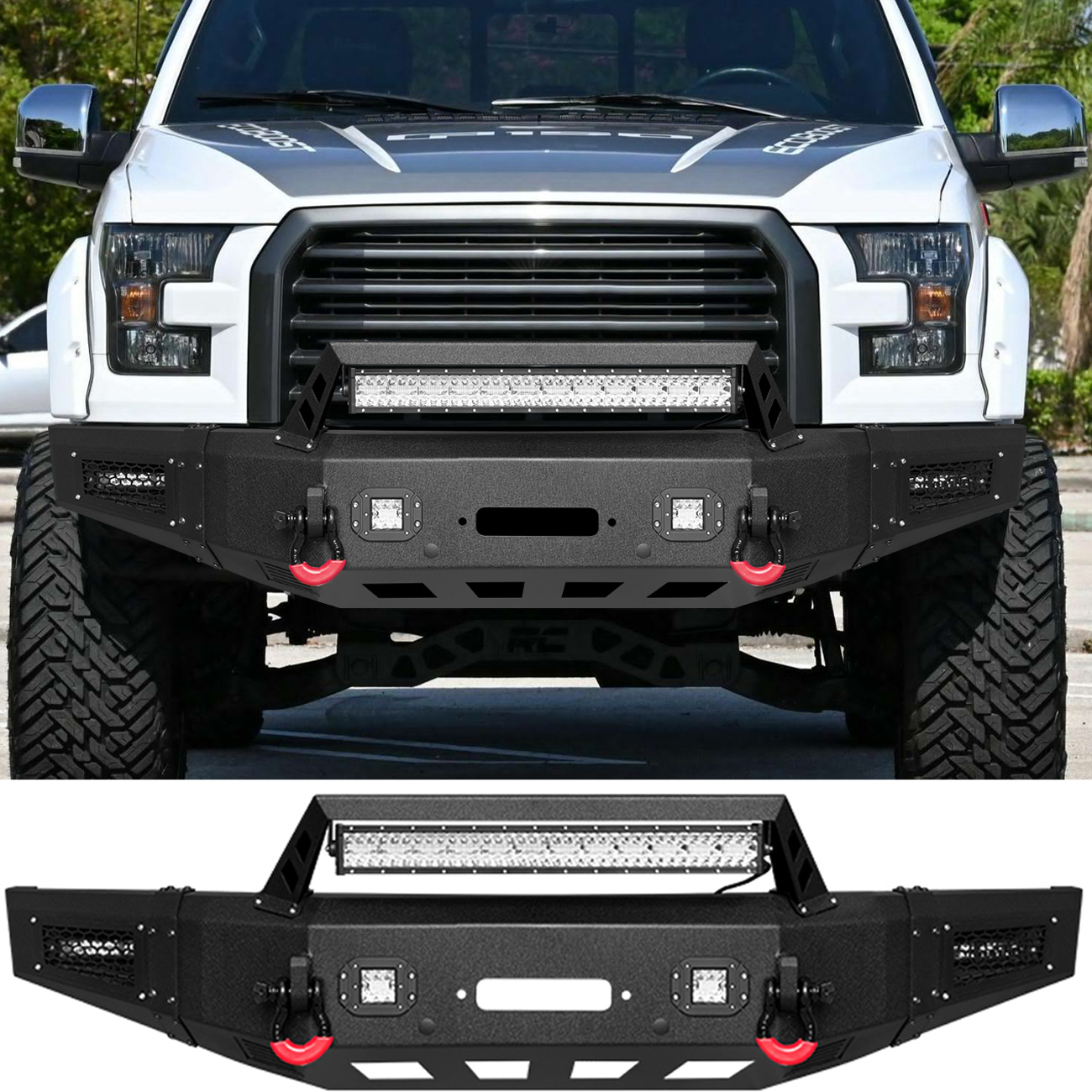 [Comprehensive Protection]: The three-piece structure front bumper perfectly fits the body lines. Rugged off-road styling enhances the vehicle’s overall aesthetic, giving it a tough and aggressive look