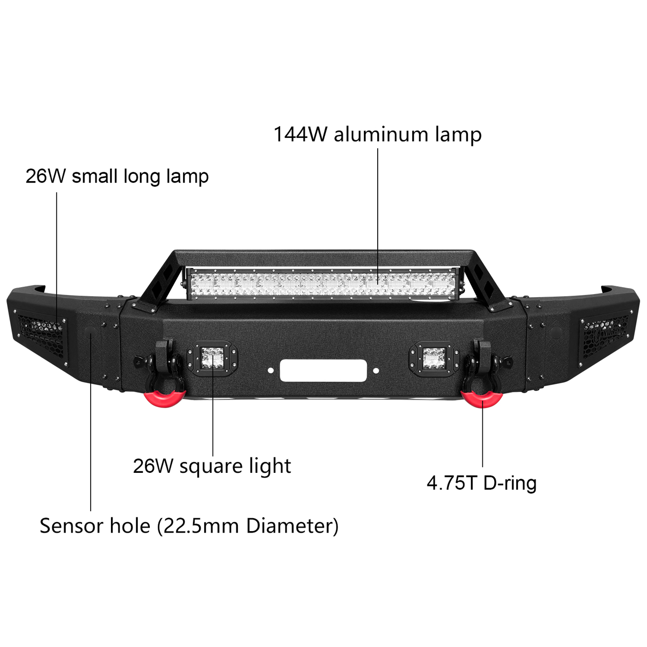 [Product Note]: The bumper does not include the wiring harness to connect the lights, the sensor hole does not support the original sensor, and the sensor needs to be purchased separately
