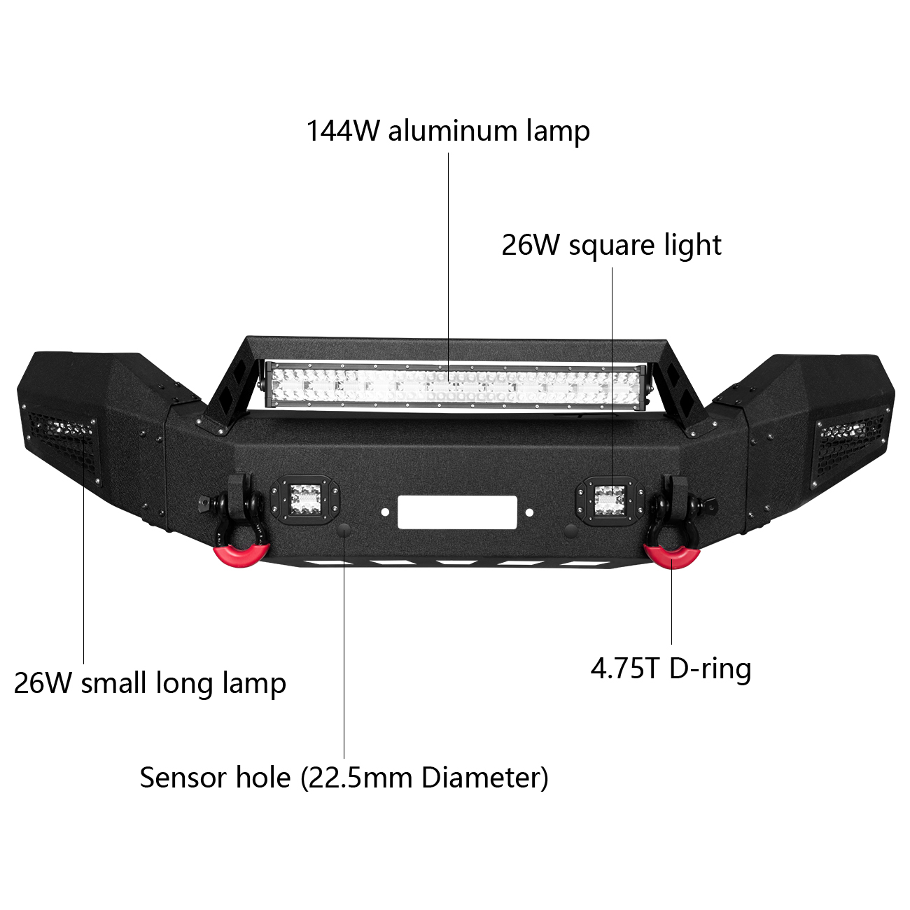 [Product Note]: The bumper does not include the wiring harness to connect the lights, the sensor hole does not support the original sensor, and the sensor needs to be purchased separately