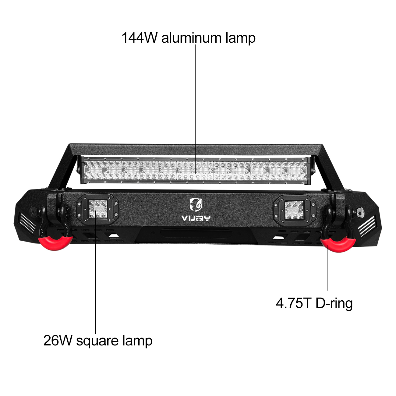 [Practical Design]: The bumper is equipped with a built-in winch plate that can withstand a winch up to 12,000 pounds