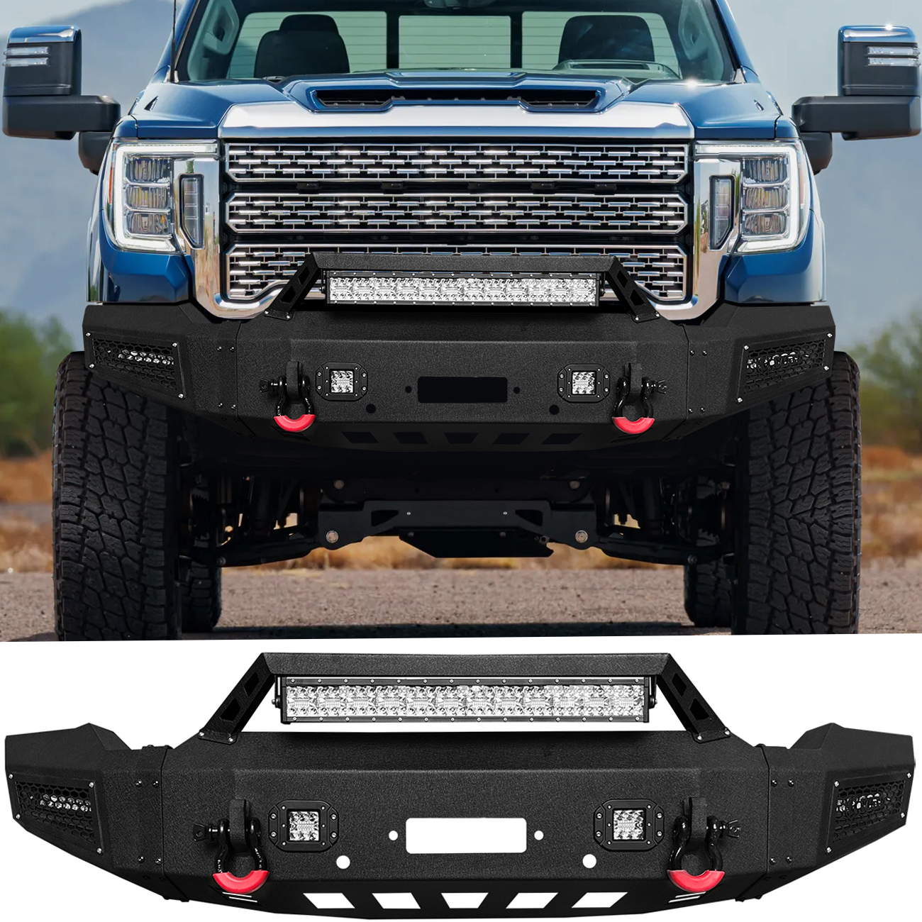 [Comprehensive Protection]: The three-piece structure bumper perfectly fits the body lines. Rugged off-road styling enhances the vehicle’s overall aesthetic, giving it a tough and aggressive look