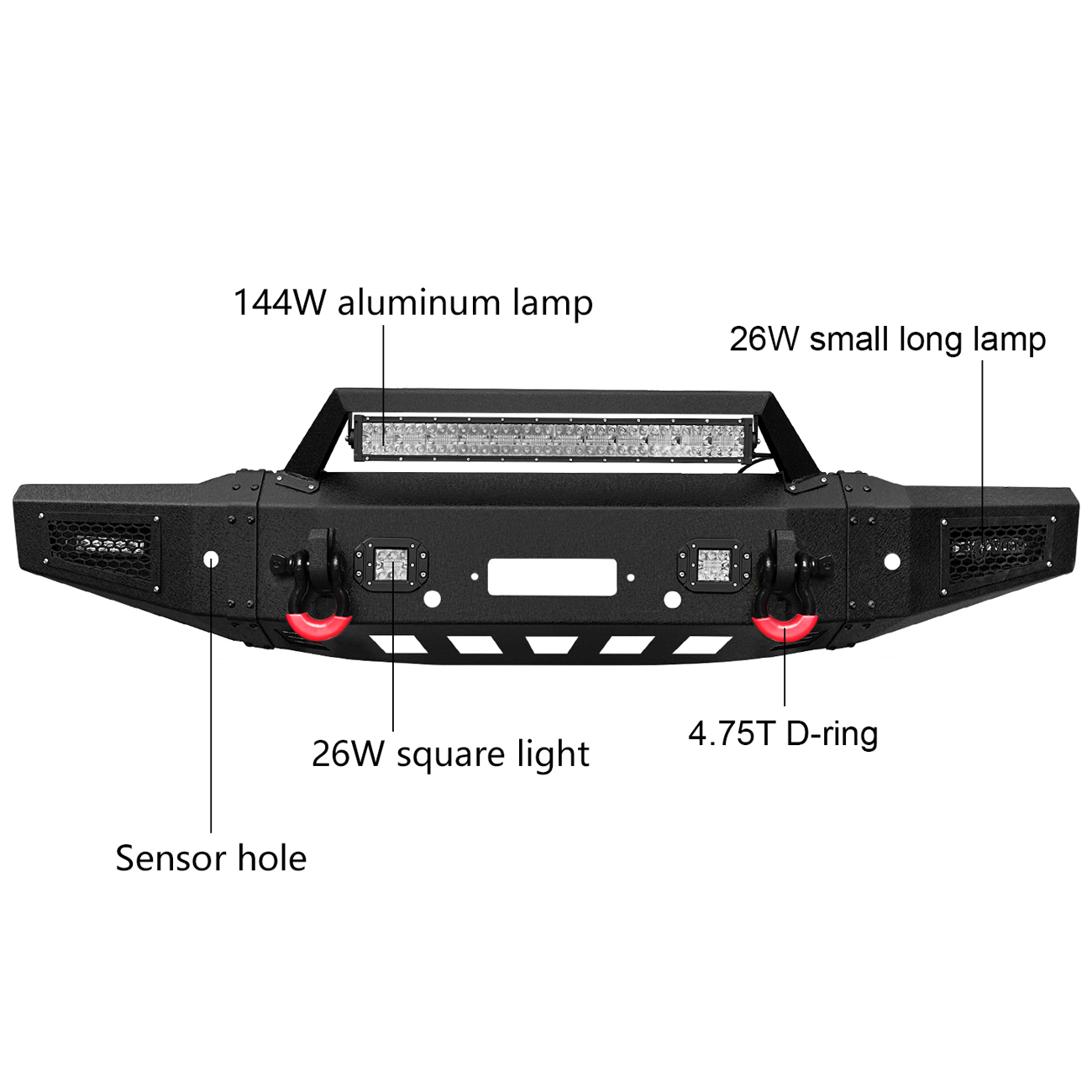 [Product Note]: The bumper does not include the wiring harness to connect the lights, the sensor hole does not support the original sensor, and the sensor needs to be purchased separately