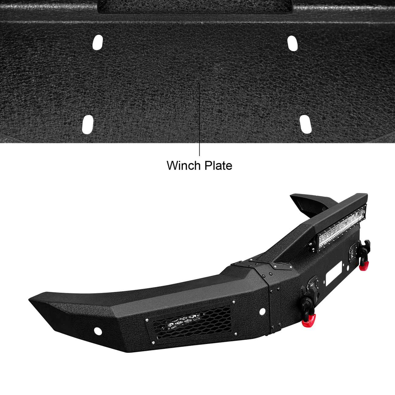 [Practical Design]: The bumper is equipped with a built-in winch plate that can withstand a winch up to 12,000 pounds