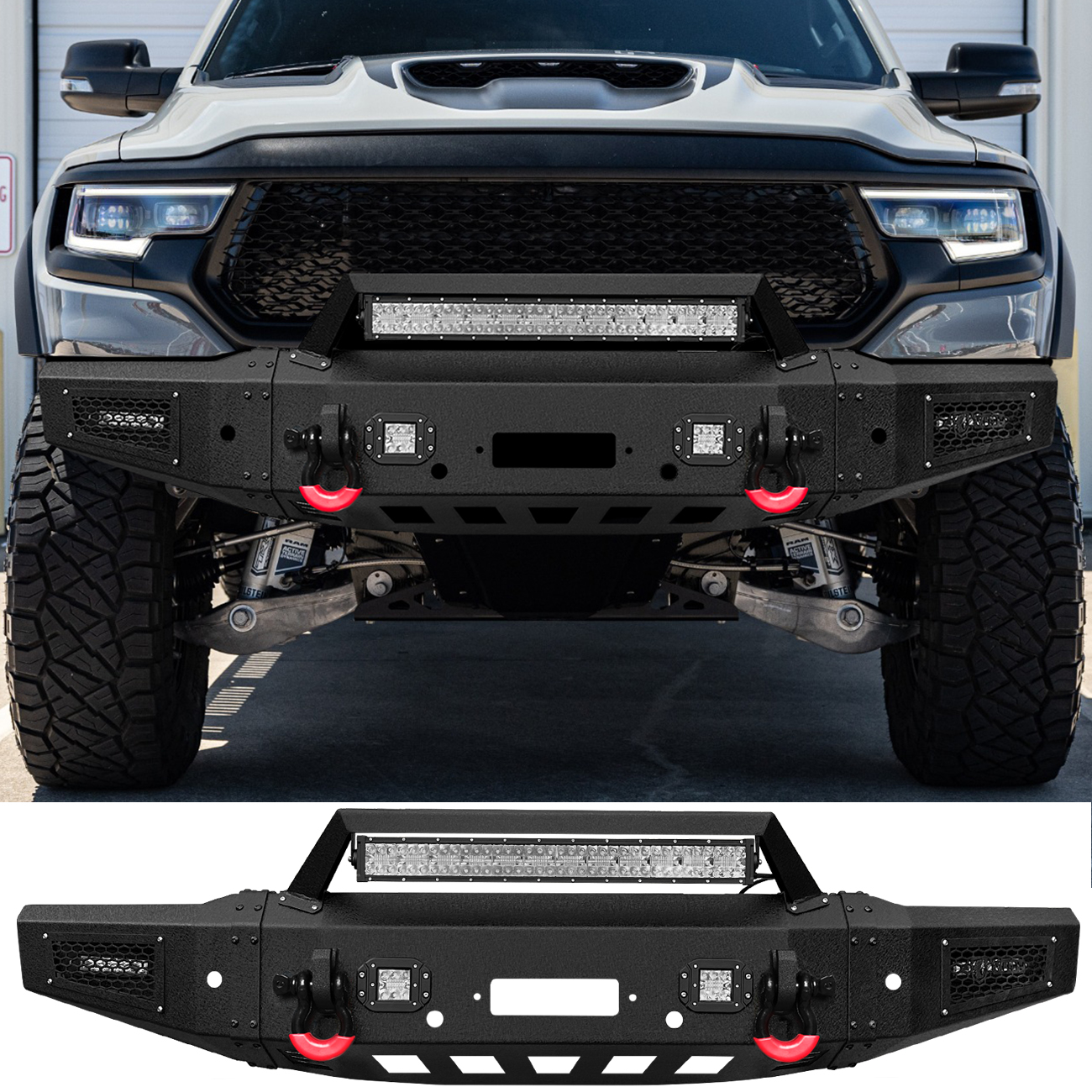 [Comprehensive Protection]: The three-piece structure bumper perfectly fits the body lines. Rugged off-road styling enhances the vehicle’s overall aesthetic, giving it a tough and aggressive look