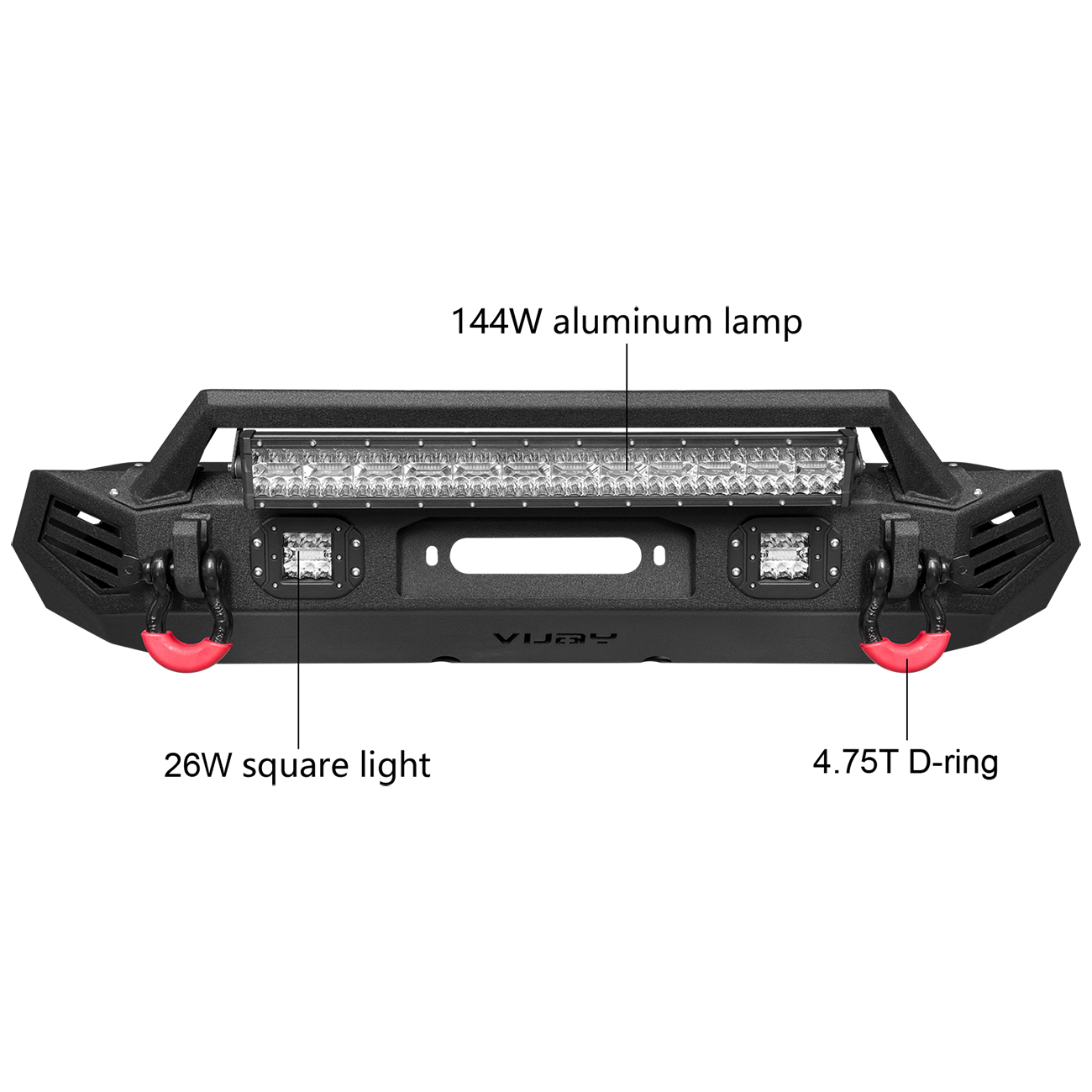 [Practical Design]: The bumper is equipped with a built-in winch plate that can withstand a winch up to 12,000 pounds