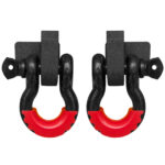 [Easy installation]:D ring Bracket replaces factory front bumper tow hook, no modification or drilling is required, the installation can be completed in 10 minutes.they can work with factory skid plate, not suitable for aftermarket skid plate