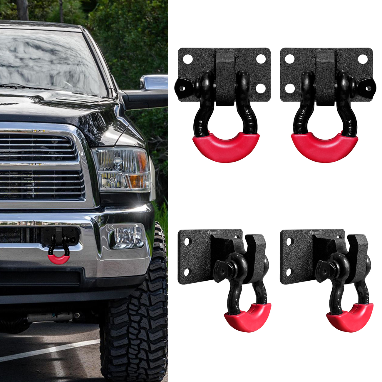 [Easy installation]:D ring Bracket replaces factory front bumper tow hook, no modification or drilling is required, the installation can be completed in 10 minutes.they can work with factory skid plate, not suitable for aftermarket skid plate