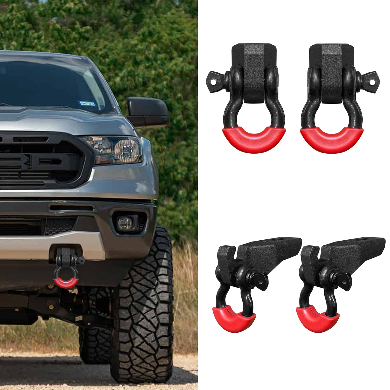 [Easy installation]:D ring Bracket replaces factory front bumper tow hook, no modification or drilling is required, the installation can be completed in 10 minutes.they can work with factory skid plate, not suitable for aftermarket skid plate