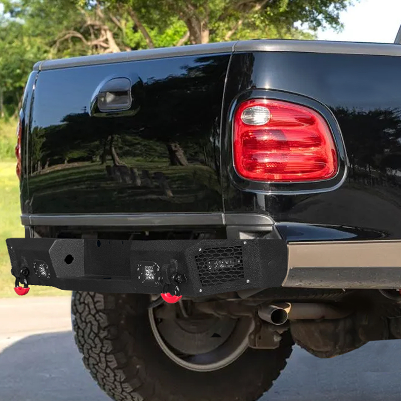 [Comprehensive Protection]: The rear bumper is a one-piece structure that perfectly fits the body lines. Rugged off-road styling enhances the vehicle’s overall aesthetic, giving it a tough and aggressive look