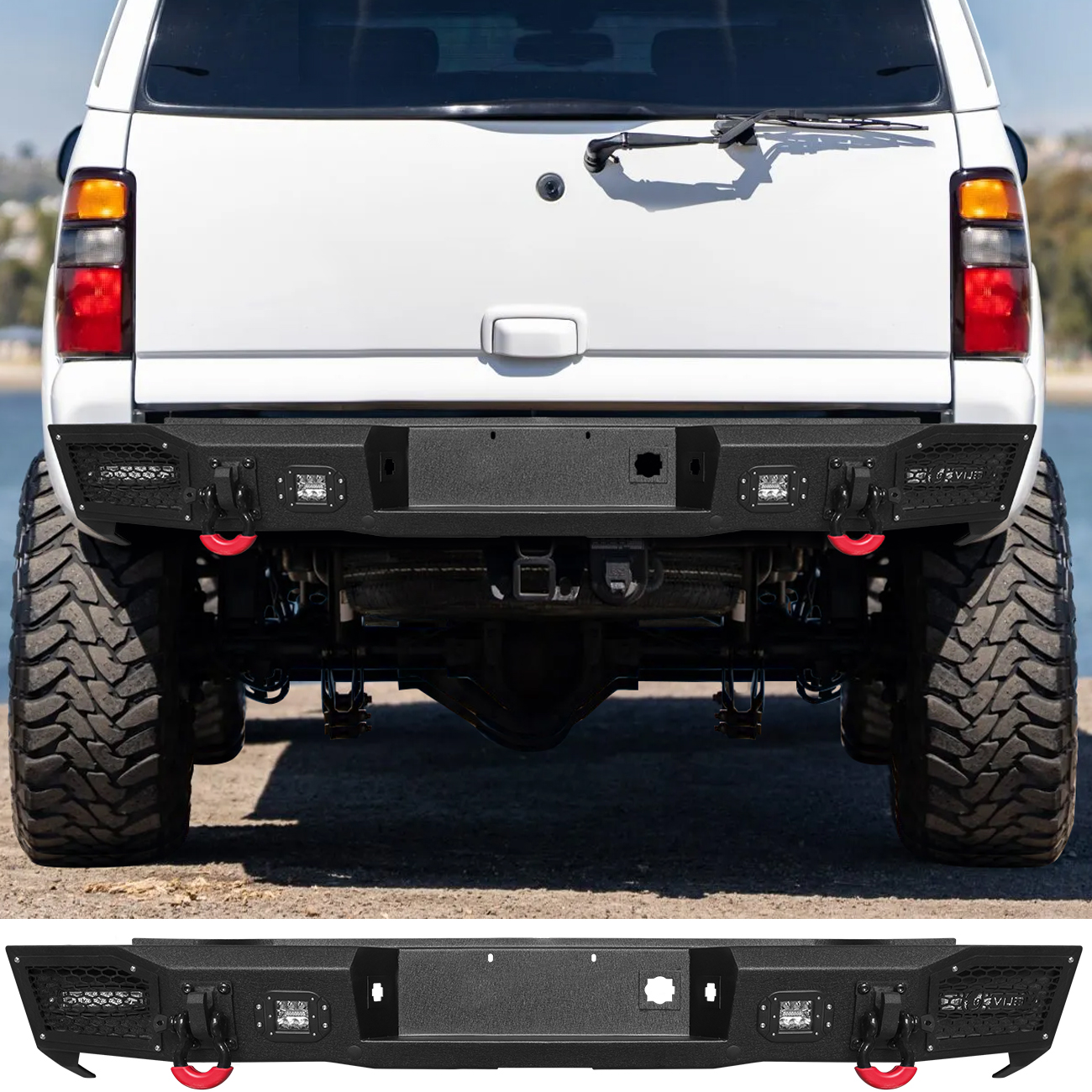 [Comprehensive Protection]: All-in-one structure rear bumper perfectly fits the body lines. Rugged off-road styling enhances the vehicle’s overall aesthetic, giving it a tough and aggressive look